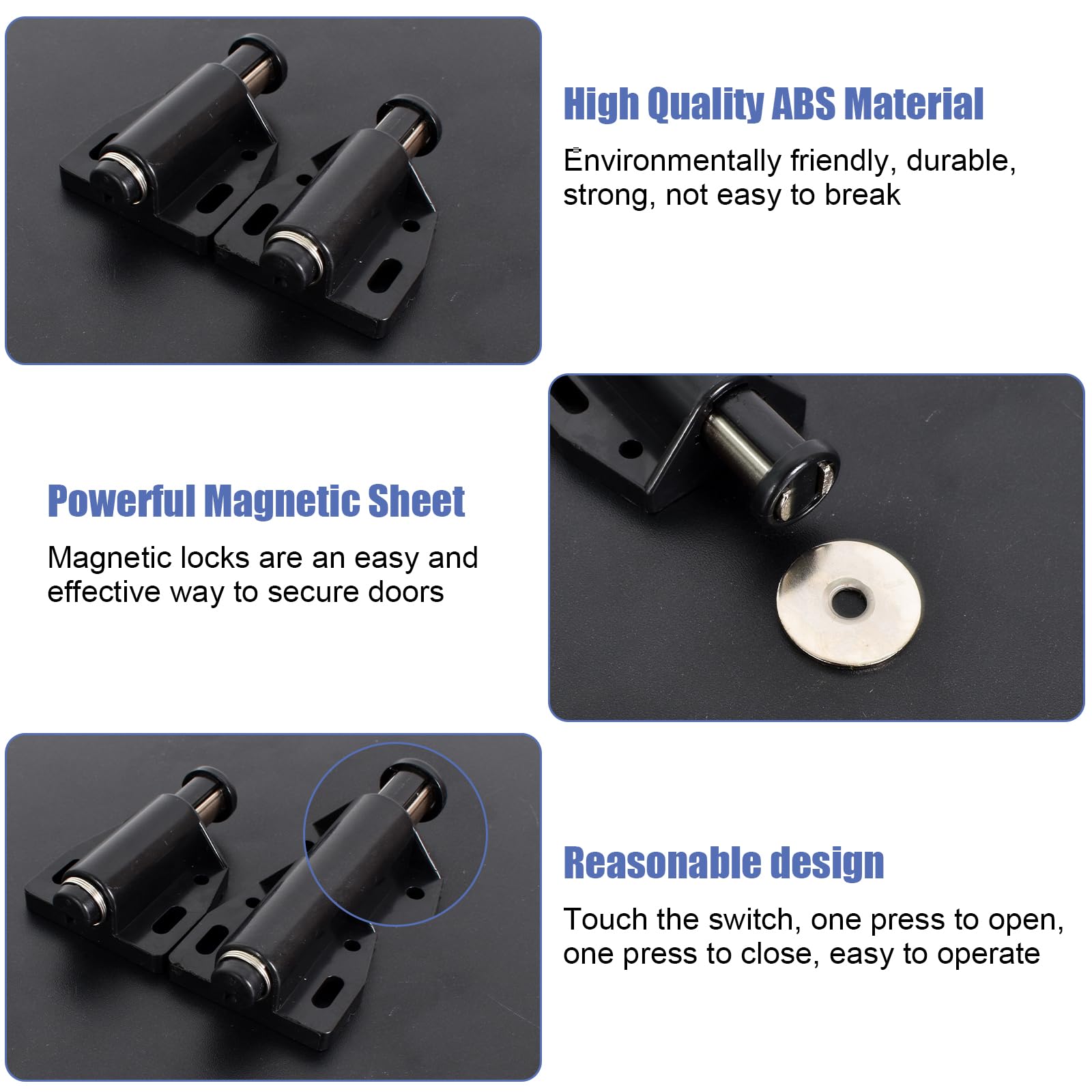Détails du produit:Matériau: PlastiqueCouleur: BlancDiamètre du trou de vis: 4mm (L*W)Taille totale de la fermeture de porte d'armoire: 28x8x10mm/1., 1x0., 31x0., 39 (L*W*H)Contenu de l'emballage: 8 pièces x Fermeture magnétique à pression magnétiqueMatériau - Fabriqué en plastique, il a une bonne résistance et une bonne robustesse, peut supporter certains impacts et charges, possède des propriétés anti-corrosion et anti-haute température, et peut être utilisé pendant longtemps. Ce loquet magnétique est équipé d’un système de pression qui facilite l’ouverture de la porte et en sécurisant sa fermeture. En effet, une simple pression exercée sur la porte suffit pour libérer le mécanisme de verrouillage [Robuste et durable]: Fabriqué en plastique, il a une bonne résistance et une bonne robustesse, peut supporter certains impacts et charges, possède des propriétés anti-corrosion et anti-haute température, et peut être utilisé pendant longtemps. 86x10mm (LxW) Fermeture Magnétique à Pression Tactile [Bon choix]: Les fermetures de porte magnétiques peuvent être utilisées dans les chambres, les cuisines, les portes d'armoires, les tiroirs, les armoires TV, les bibliothèques, etc. Force et résistance: La fermeture magnétique à pression est fabriquée en ABS de haute qualité, résistant à l'usure, et dotée d'une tête magnétique puissante garantissant une fermeture sûre et stable des portes, évitant les espaces vides et améliorant leur alignement.Système push to open: Grâce au mécanisme à ressort intégré, les portes s'ouvrent et se ferment simplement en... Rendu 3d de l'espace vide pour les meubles Loft avec plafond surélevé [Caractéristiques/Design]: La fermeture magnétique à pression magnétique a une bonne force magnétique avec une seule tête magnétique ronde, qui peut maintenir vos armoires ou tiroirs fermés, et empêcher les portes et tiroirs de s'ouvrir facilement. [Fermetures magnétiques pour armoires]: Le paquet comprend 8 pièces de fermetures magnétiques blanches avec un diamètre de trou de vis de 4mm, et une taille totale de fermeture de porte d'armoire de 1., 1 x 0., 39 x 0., 31;/28 x 10 x 8mm (l*w*h).