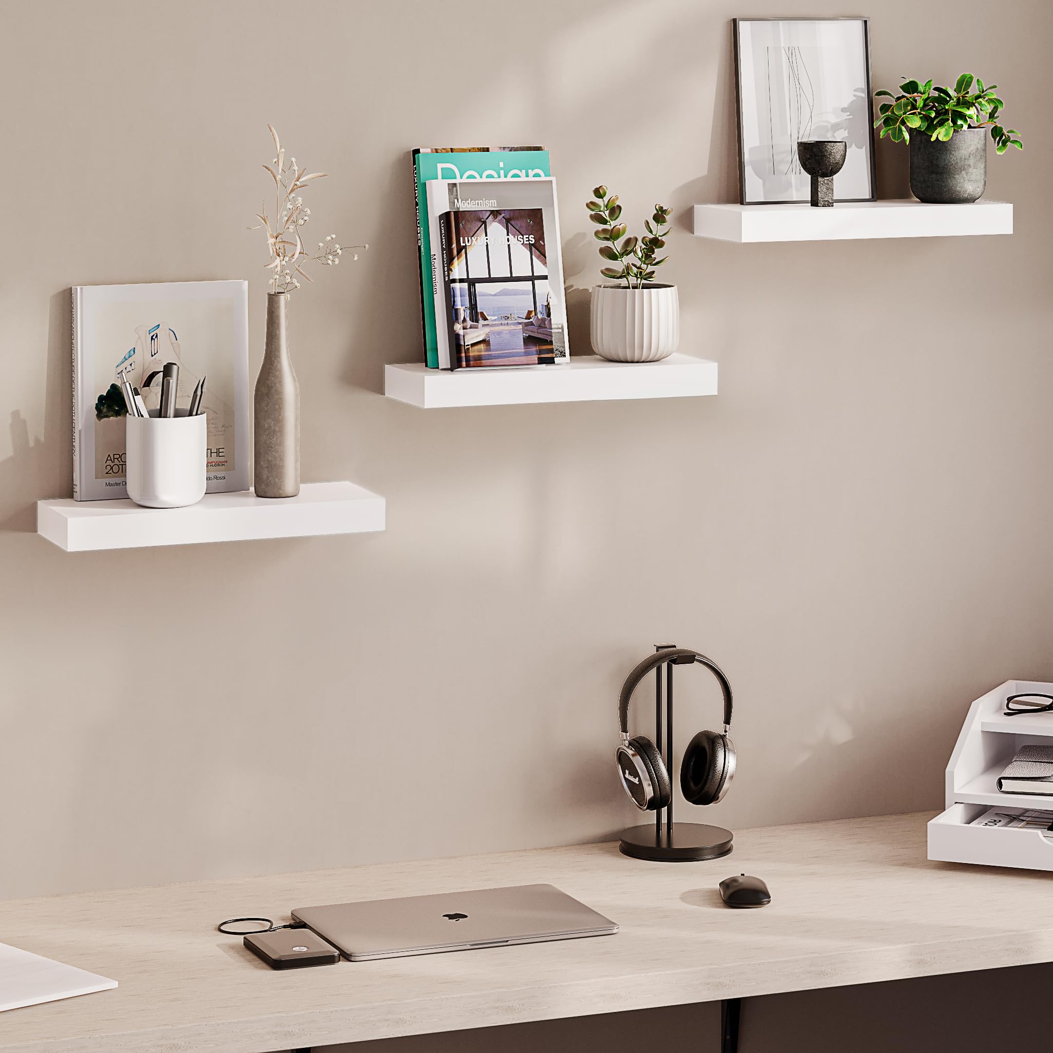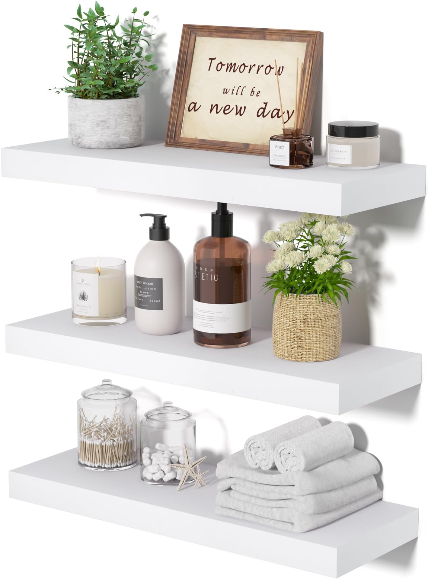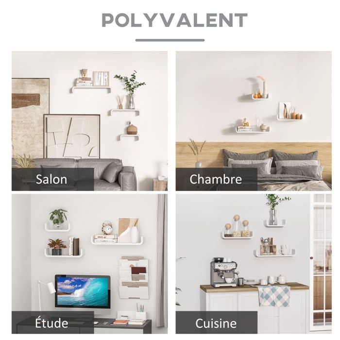 upsimples Lot de 3 étagères flottantes blanches pour mur, étagères murales pour salle de bain, chambre, salon, bureau, cuisine Elles servent également d'étagères pour présenter vos plantes, disques, magazines et trophées dans le salon. Deco Murale Boho Macramé éTagèRe Murale Tissé Gland Bois Organisateur éTagèRes Mur Flottant Cintre Plante Decoration Maison Principaux points forts · Dimensions du produit. 64,5P x 16,5l x 8,5H centimètres · Type de finition. Peinte · Marque. upsimples · Taille. one size · Assemblage... Bords finement travaillés : nos étagères avec leur design mural et leurs bords finement travaillés, garantissent que vos accessoires de salle de bain tels que le shampooing, le parfum, les cadres photo et le papier toilette restent en place. Etagere Flottante étagère Murale Upsimples Lot De 5 U00e9tagu00e8res Murales Blanches Pour Chambre D'enfant Bibliotheque Livre étagère Murale Flottante Pièce maîtresse de la décoration de la pièce : ces étagères présentent un design distinctif et une forme élégante, ce qui en fait un point focal qui élève le style de n'importe quelle pièce. Que ce soit pour présenter des collections précieuses ou organiser les objets essentiels du quotidien, ils améliorent sans effort à la fois la fonctionnalité et l'esthétique de votre maison. Installation sans effort : l'installation d'étagères peut souvent être une tâche ardue, mais nous avons simplifié le processus avec un design qui garantit que même les débutants en bricolage peuvent terminer l'installation avec facilité. upsimples Lot de 4 étagères murales flottantes de 38,1 cm pour salle de bain, chambre, salon, bureau, cuisine. 4,2 sur 5 étoiles 97. 1 offre à partir de 20,89...