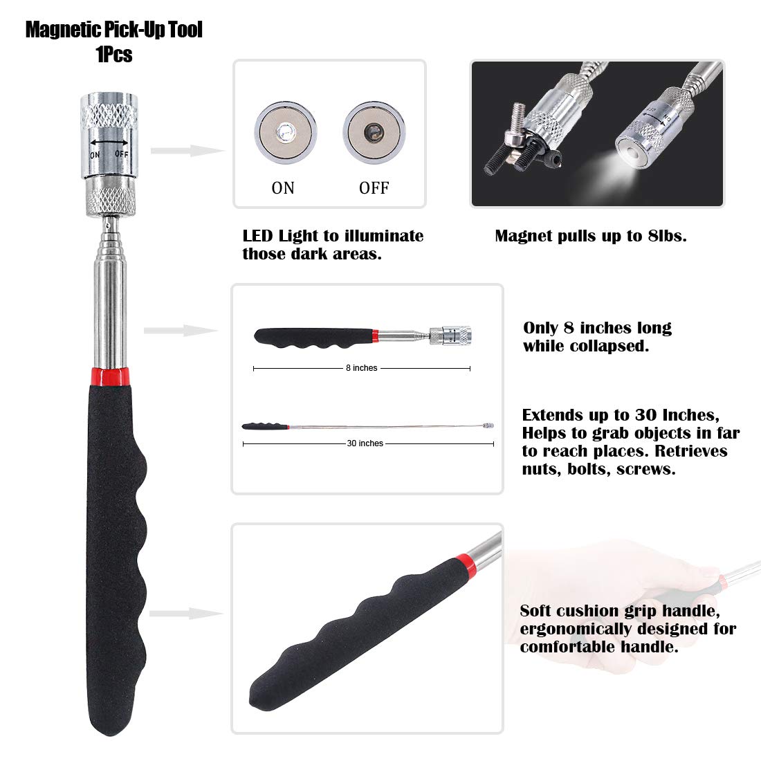 KIT DE 10 crochet ET OUTILS DE RAMASSAGE - 4 crochet mini de 6,5 pouces (crochet complet, crochet droit, crochet à 45 degrés et crochet à 90 degrés) ; 4 crochet grands de 10 pouces (crochet complet, crochet droit, crochet à 45 degrés et crochet à angle droit de 90 degrés) ; 1 grattoir de précision de 10 pouces et 1 outil de ramassage magnétique télescopique de 7,7 pouces avec lumière LED. APPLICATION LARGE - Notre ensemble d'outils de crochet et de ramassage est utilisé pour réparer les voitures, les tuyaux de radiateur, séparer les fils, retirer et assembler de petits fusibles, joints toriques, pinces, joints d'étanchéité, ressorts, fils, rondelles et autres petits gadgets. Il peut éclairer les petits espaces et ramasser facilement les écrous, boulons, vis ou autres petits objets métalliques qui peuvent être attirés par les aimants. Hi-Spec Ensemble De 10 Outils: Crochets De Précision, Pics, Grattoirs Et Outil De De Précision Ramassage Magnétique Télescopique à LED Pour Réparation Découvrez les méthodes et outils essentiels pour réaliser une étude de la concurrence efficace. Ce kit de 17 outils est un rêve pour les mécanos et bricoleurs auto ! Il comprend des crochets de différentes formes (courbés, 45°, 90°), des aiguilles... MATÉRIAU DURABLE - Nos outils de crochet de précision sont fabriqués en acier au carbone durable, résistant à la rouille, à la corrosion, à haute résistance, ne se plie pas facilement et peut résister à une utilisation à long terme. Eponge jaune et verte grattante Il est également livré avec un sac portable qui permet de fixer les outils en place pour un transport facile lors des déplacements. La conception de poignée en saule à double trou sur la poignée offre une prise et une maniabilité supplémentaires, vous aidant à travailler plus efficacement. Awsuc 108cm Pince Ramasse Objet pour Personnes gées et Handicapés