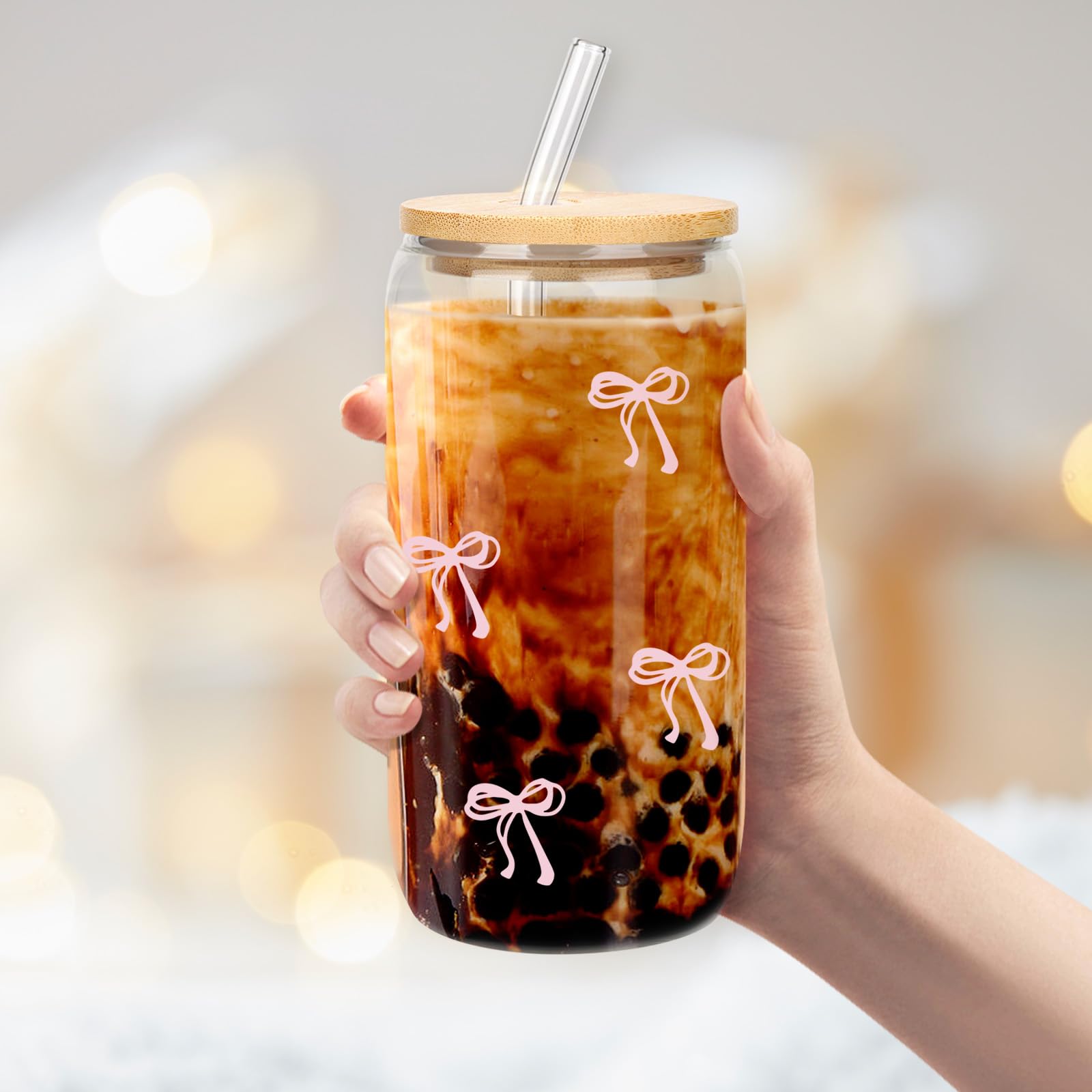 Pour que chaque gorgée soit agréable, une brosse de nettoyage pour paille est incluse. Endroit approprié - Idéal pour une fête, un bar, en famille, ou comme un excellent cadeau pour vos amis et votre famille, ou pour divertir vos invités. 4.LAVE-VAISSELLE: Les bocaux sont fabriqués en verre durable de haute qualité et sont faciles à laver, il suffit de les laver sous l'eau tiède ou de les mettre au lave-vaisselle.. nous... Exprimez votre affection ou votre gratitude en offrant ce charmant accessoire. Bubble Tea Cup Yetene Coquette Bow Tasse Esthétique En Verre Avec Tasse Noeud Cette tasse à nœud tendance est idéale pour les mamans, les petites amies, les amis, la femme, la mariée ou les demoiselles d'honneur, alliant fonctionnalité et design ludique. Produit : tasse en verre papillon. Vous cherchez le cadeau parfait ? La tasse en verre avec nœud rose est un merveilleux choix pour les occasions spéciales telles que les anniversaires, Noël, la fête des mères ou la Saint-Valentin. Quantité : 1 tasse en verre avec nœud, une paille en verre, une brosse à paille. Design nœud accrocheur : égayez votre journée avec l'adorable nœud de cette tasse Les charmants nœuds roses ajoutent une touche charmante, ce qui en fait une pièce remarquable dans n'importe quel environnement. Cadeau parfait pour toute célébration : vous cherchez un cadeau attentionné ? La tasse en verre avec nœud rose est idéale pour les occasions spéciales comme les anniversaires, Noël ou la Saint-Valentin. Cette ravissante collection dispose d'une superbe tasse en verre ornée d'un nœud rose, avec un couvercle assorti et une paille réutilisable. Tasse esthétique avec nœud – Tasse en verre avec nœud, jolis Cette tasse en verre est plus qu'une simple boisson, elle améliore votre expérience culinaire, servant de bel accessoire qui apporte de la joie chaque fois que vous prenez une gorgée. Parfait pour les mamans, les petites amies, les amis ou les demoiselles d'honneur, cette tasse tendance allie praticité et plaisir. Yetene Coquette Bow Tasse Esthétique En Verre Avec Nu0153ud Rose Avec Couvercle Et Paille - 473 Ml - Tasse à Café Glacé - Cadeau Pour Femme, Fille, Amie... Avec une hauteur de 15,2 cm et un diamètre de 7,6 cm, il tient parfaitement dans votre main. Pour conserver son aspect impeccable, il est recommandé de le laver à la main uniquement ; il ne passe pas au lave-vaisselle ni au micro-ondes. Son design polyvalent le rend idéal pour un usage quotidien, des réunions spéciales ou des fêtes. Montrez votre affection ou votre amour en offrant ce ravissant accessoire.