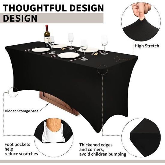 Tissu de qualité supérieure : La nappe est fabriquée en tissu infroissable 90 % polyester et 16 % élasthanne. Design parfait : Les nappes utilisent un matériau élasthanne extensible dans tous les sens et un design pour quatre pieds, ce qui permet de fixer fermement la nappe, d’éviter de se cogner contre les parties de la table et de mieux adapter la nappe à votre table de façon belle et homogène. Housses De Chaise VEVOR Pliantes En Élasthanne Extensible, Couverture Universelle Amovible Lavable Pour Mariage Vacances Banquet Fete 95792054 Plusieurs choix : Cette nappe est disponible en 1,2 m, 1,8 m, 5,8 m, et il existe plusieurs combinaisons. Infroissable, résistant aux taches et très extensible Décoration idéale : Parfaites pour les repas de famille, les fêtes d'anniversaire, les festivals, les mariages, les événements, les anniversaires de mariage, les tables de buffet, les décorations de remise de diplôme, les banquets, elles peuvent également être utilisées pour les salons d'artisanat, les salons professionnels, les réceptions d'hôtel. Nappe Rectangulaire 180 Cm IVAPUPU Mantel Rectangular De Lino A Prueba De Derrames Nappe Pour Table Rectangulaire 180 Le tissu est doux et innovant avec une technologie de fixation au pied de la table. Acheter plusieurs quantités permet d'économiser de l'argent. Vous pouvez choisir la quantité et la taille les plus appropriées en fonction de vos besoins. Achetez IVAPUPU Lot De 2 Nappes Rectangulaires Ajustées De 180 Cm Extensibles, Bleu Denim, Lavables, En élasthanne, Protection De Table Pour Fête, Mariage...