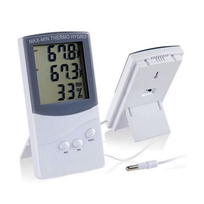 Produit de qualité supérieure., Couleur : noir. Hygromètre de haute qualité, merveilleux outils pour l'intérieur, l'extérieur, la maison, le laboratoire, la bibliothèque, etc. Dimensions : environ 4,7 x 2,8 x 1,5 cm. Le grand écran LCD offre une visibilité améliorée et des mesures en un coup d'œil. Unité de température convertible entre °C/°F. Avec la conception du support... Précision fiable] thermometre hygrometre La plage de température mesurable: -50 ℃ ~ 70 ℃ (-58 °F ~ 158 °F), précision de mesure de la température: ± 1,0 ℃ (± 1,8 °F), résolution de température: 0,1 ℃ (0,2 °F). Plage d'humidité mesurable: 10% HR ~ 99% HR, précision de mesure de l'humidité: ± 5% HR, résolution d'humidité: 1% HR.[Moniteur de température d... Thermomètre Hygromètre Numérique Pour Mesures Intérieures Et Extérieures Tension de fonctionnement : 2 piles bouton LR44 de 1,5 V (non fournies). Mini Thermomètre Numérique Lcd, Hygromètre, Hygromètre, Thermomètre ➽Résolution d'affichage de l'humidité : 1 % RH Dimensions de l'écran LCD : 3,6 x 1,7 cm (environ). <br/><br/>