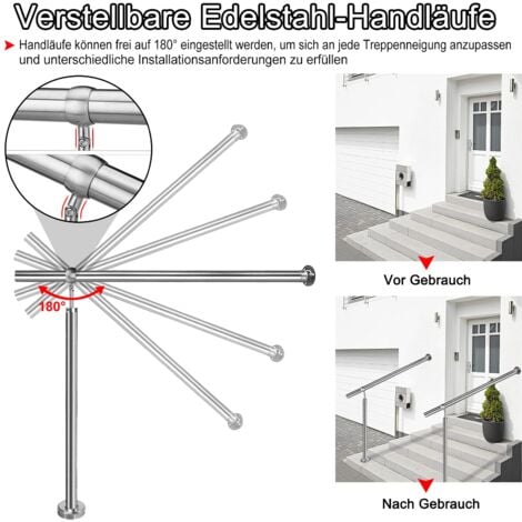 Matériau : Connecteur en acier inoxydable AISI 304 et support mural : 304SSRohrstopfen: 304SS Longueurs disponibles : 60 cm, 80 cm, 100 cm, 120 cm, 150 cm, 180 cm, 200 cm Contenu : 1 main courante en acier inoxydable et support, 2 embouts en acier inoxydable, 1 kit de matériel de montage Sécurité et confort : les supports de main courante d'escalier offrent une excellente stabilité et soutien lors de la montée des escaliers, minimisant le risque de chute et assurant une maison plus sûre et plus confortable. NAIZY Rampe d'escalier Acier Inoxydable Main Courante en Acier Murale Garde-corps D'entrée, pour Escaliers et Balcon 150x90 CM - Bricolage Caractéristiques : Couleur : acier inoxydable. Elle est particulièrement utile pour les personnes âgées et offre un soutien supplémentaire. Main Courante / Rambarde Murale (200 cm) en Acier Inoxydable Inox 304.Robuste, design moderne.Kit inclus.WTC-12930 Elle s'adapte parfaitement à n'importe quel intérieur ou extérieur et peut être utilisée aussi bien comme balustrade de couloir que de balcon. Utilisation polyvalente : la rampe d'escalier est non seulement fonctionnelle, mais aussi esthétique. Design ergonomique : la main courante dispose d'une poignée arrondie qui offre une sensation agréable et sûre lorsque vous montez et descendez les escaliers. En outre, elles sont faciles à nettoyer avec un simple chiffon pour préserver leur beauté et leur fonctionnalité pendant longtemps. Rampe Escalier Intérieur Rampe D'escalier - XMTECH - 200cm - Acier Inoxydable - Angle Réglable - Intérieur & Extérieur - Bricolage Réglement Des Escaliers Quebec Rampe d'escalier Garde-corps D'entrée 100x90 CM Main Courante en Acier... Durable et résistante aux intempéries : la main courante en acier inoxydable est particulièrement robuste et résiste aux différentes conditions météorologiques, aussi bien à l'intérieur qu'à l'extérieur.