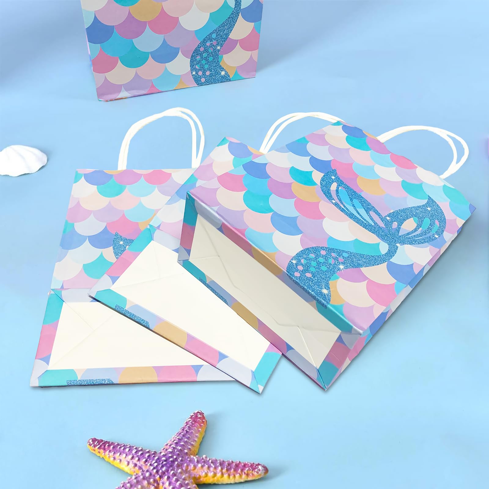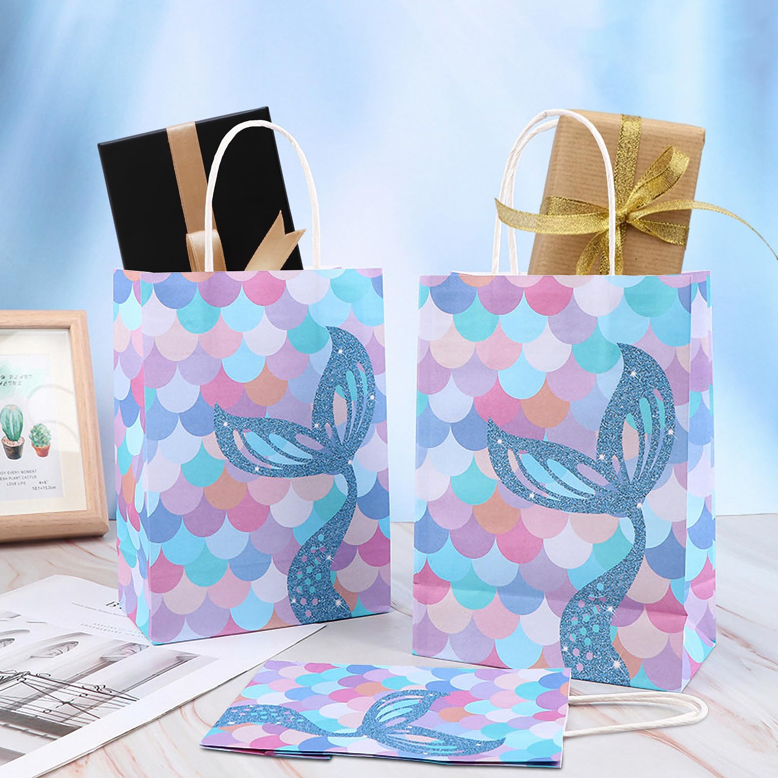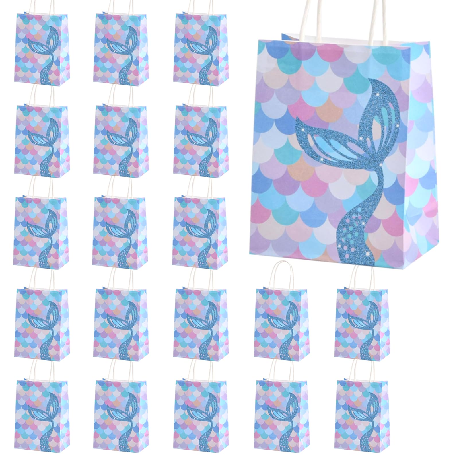 Papier 20 Sacs Cadeaux Sirène FINEASY - Papier Kraft Avec Poignées - Fête Anniversaire Enfant Pochette Cadeau FINEASY 20 Sacs-cadeaux en papier, Sacs de fête Mermaid, Sacs en papier pour la décoration d'anniversaire à thème Mermaid, Sacs en papier kraft avec poignées, Sacs-cadeaux d'anniversaire pour enfants, Sacs de bonbons pour filles Caractéristiques : Couleur : Bleu Poids : 385g Taille : 15 x 8 x 21 cm / 5,9 x 3,2 x 8,3 pouces Matériel : Papier Kraft Le paquet comprend : 20 x Sacs de fête Mermaid Garantie: 1., Nous adhérons à la politique de retour d'Amazon., 2., Dans un délai de 30 jours, nous nous engageons à assumer l'entière responsabilité des problèmes de qualité., 3., Tout dommage survenu pendant le délai de livraison sera facturé par nous. Les sacs constituent un ajout élégant à votre fête et feront en sorte que vos invités repartent avec le sourire. Sacs de fête sirène - Sacs d'anniversaire de luxe - Sac Marque. Loveinside ; Couleur. Sirène d'anniversaire ; Matériau. Papier ; Occasion. Anniversaire ; Composants inclus. Papier de soie, étiquette cadeau, carte de vœux... 【Unique Design】Les sacs cadeaux présentent un design unique de sirène qui crée une atmosphère enchanteresse pour n'importe quelle fête. 【Multi-Use】Ces sacs de fête sirène sont polyvalents et parfaits pour les fêtes d'anniversaire des enfants, les fêtes à thème, les rassemblements de filles, etc. Le design visuellement attrayant en bleu attire tous les regards et est parfait pour diverses occasions telles que les fêtes d'anniversaire, les anniversaires d'enfants ou d'autres événements festifs. Les sacs robustes avec poignées peuvent être facilement transportés et sont idéaux pour stocker des bonbons, des petits cadeaux et plus encore. 【Haute Qualité】Les sacs de fête sont fabriqués en papier kraft durable et respectueux de l'environnement. Des chaussures aux vêtements, des tenues de sport aux accessoires. Cette quantité vous permet de servir une liste d'invités plus importante ou de vous préparer pour différents événements.
