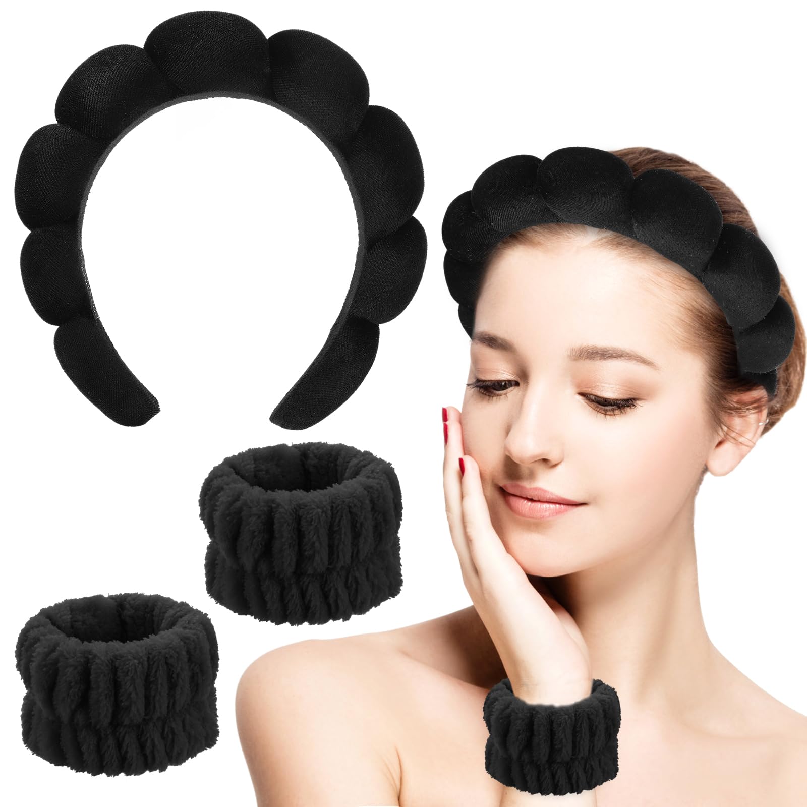 Description du produit Spécifications Nom du produit:Bandeau Maquillage Matériel: velours Poids: 78 grammes Détails d'emballage: Polybag Fonction Comprenant un bandeau doux et confortable et deux bracelets, cet ensemble de trois pièces est l'accessoire idéal pour vos soins quotidiens de la peau. VBSJAH Bracelets de Lavage, 3 Pièces Set de Bandeau de Spa 3 pièces Set de bandeau facial (bandeau nœud papillon, bandeau bracelet, bracelet serviette) - Bandeau et bracelet de spa réutilisables, bandeau moelleux de couleur unie, serre-tête moelleux, bandeau de yoga, bandeau en fibre fine, bracelet pour femmes, bandeau de maquillage facial avec bande élastique réglable - Convient pour le nettoyage de la salle de bain, les essentiels de voyage... Ils sont excellents pour vous aider à empêcher l’eau de pénétrer dans vos bras et à garder vos vêtements au sec et au chaud. Ajoutez cet ensemble à votre gamme de soins de la peau aujourd'hui et découvrez la différence qu'il fait dans la vie quotidienne! Le bandeau est fait d'un matériau éponge de haute qualité qui est doux pour la peau et assure un ajustement confortable. Chaque fois que vous vous adonnez à l'auto - soin, dites au revoir à vos cheveux en désordre et dites bonjour à un visage propre et frais. Large gamme d'utilisations:Bandeau Spa pour Femme le ruban de lavage de visage de Spa est un bon accessoire pour faire le spa, le sport, le yoga, la course, le lavage de visage, la douche et le maquillage, il est également pratique pour vous de travailler, de lire et d'autres scénarios. Offrez - vous un cadeau pratique et luxueux avec notre ensemble de bracelets serre - tête spa. Le forfait comprend:Ensemble de Bandeau vous recevrez 1 bandeau et 2 bracelets. Description de Bandeau de maquillage, 3 pièces, bandeau cosmétique pour femme, bandeau spa Description du produit : Couleur : Léopard kaki, rayures noires et blanches, pois colorés Taille : Taille unique Matière : Flanelle Contenu de l'emballage : 3 bandeaux Description : [Contenu de l'emballage] Vous recevrez un lot de 3 bandeaux. Taille extensible : 30 cm. [Doux et très... Serre Tete Bandeau Demaquillage Visage Bracelets De Lavage En Microfibre,3 Pièces Spa Visage Bandeau Cheveux Bandeau Cheveux Femme Maquillage Accessoires Cheveux Cadeau parfait:Bandeau en Éponge le bandeau de soin de la peau est parfait pour les fêtes d'anniversaire, les anniversaires, la fête des mères, Thanksgiving, Noël, Saint - Valentin, nouvel an, etc.
