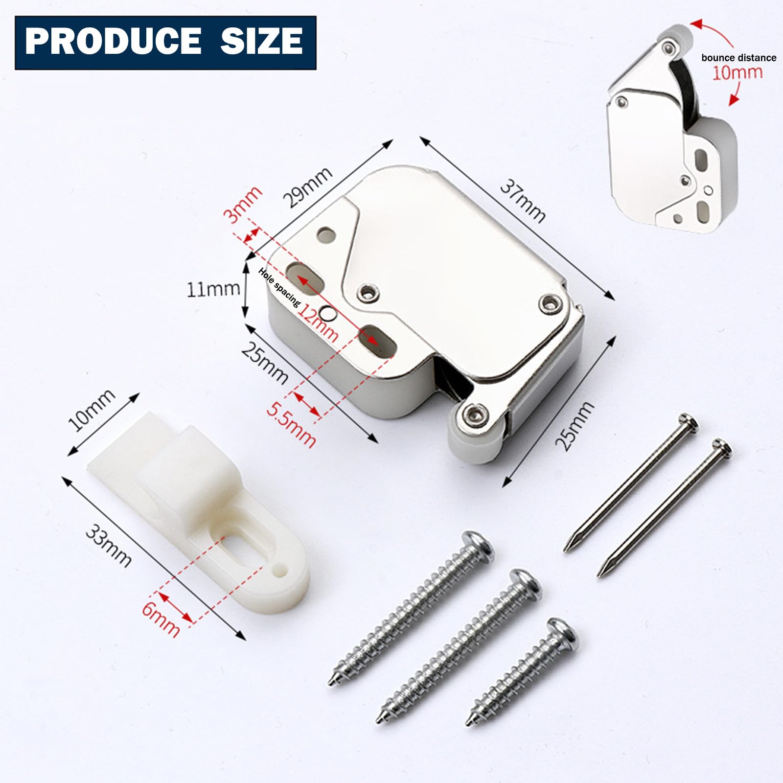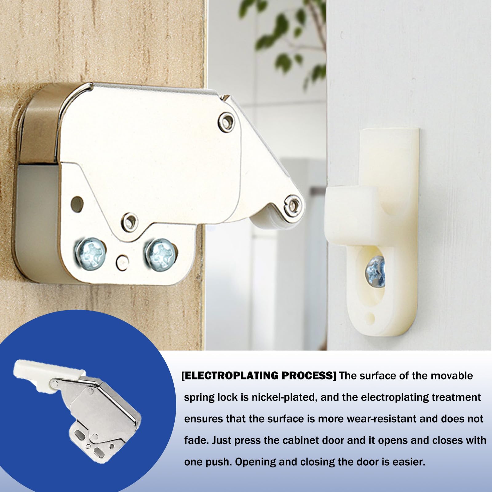 PROCESSUS DE PLACAGE:La surface de la serrure à ressort mobile est nickelée, et le traitement de placage garantit que la surface est plus résistante à l'usure et ne se décolore pas. Serrure Magnetique 5 Pièces Aimant Porte Placard,aimant Placard,fermeture Porte Aimants Pour Porte De Placard Le design caché prend en compte à la fois la beauté et la praticité. Après 50 000 tests, c’est toujours aussi fluide. Le Loquet Permet D'ouvrir Et De Fermer Des Portes D'armoire, Des Tiroirs En Bois Ou Des Tiroirs. Ouvre-porte Stable Et De Qualité Supérieure Pour Portes De... Il suffit d'appuyer doucement sur la porte de l'armoire pour qu'elle s'ouvre et se ferme en même temps. Le ressort durable peut être ouvert et fermé plus de 50 000 fois. Aimant Porte Placard 6 Pièces Loquet Magnetique Porte Acier Inoxydable... La surface est nickelée pour augmenter la résistance à l'usure et garantir une longue durée de vie. Le kit contient 5 boutons-pression délicats et est livré avec le matériel de montage complet, y compris des vis autotaraudeuses à filetage ouvert, pour simplifier le processus d'installation. Loquet Magnetique Aimant Porte Placard 12 Pièces Très Mince Loqueteau Magnétique Largement utilisé dans diverses portes d'armoires, telles que les armoires à chaussures, les armoires, etc. Suivez les instructions illustrées pour assurer la sécurité et la beauté de votre maison. L'installation est facile. CONTENU DE L'EMBALLAGE:L'emballage contient 5 pièces de boutons-pression avec les vis nécessaires à l'installation (chaque bouton-pression métallique contient 2 clous et 3 vis autotaraudeuses), les vis autotaraudeuses ont des filets transparents pour faciliter l'installation. APPLICATION:Les serrures à bouton-pression conviennent aux armoires à chaussures, aux penderies, aux armoires TV, aux armoires de chambre, aux portes de grenier et à d'autres portes et fenêtres.