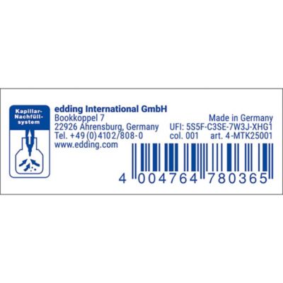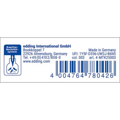 Prolonge la durée de vie des surligneurs/marqueurs de texte edding, sans ajout de xylène et de toluène., ., Lorsqu'un marqueur edding pour tableau blanc n'a plus d'encre, il peut être rapidement remis en état d'écrire en le plaçant dans la bouteille de recharge pendant au moins une heure., ., La recharge des marqueurs n'a pas seulement un impact positif sur l'environnement, elle permet aussi de faire des économies., ., Convient pour les marqueurs edding Brilliant e-30 et e-33 dans les couleurs noir, rouge, bleu et vert., ., Produit de marque de grande qualité, fabriqué en Allemagne. Recharge Encre Pour Marqueur Permanent Edding T 25 Recharge D'encre Pour Marqueur Permanent - Bleu - 30 Ml - Avec Système De Distribution Par Gouttes, Pour Une Recharge Rapide De Presque Recharge Pour Marqueur Edding L'emballage contient 1 recharge d'encre en bleu Recharge encre Jaune pour surligneur Edding - Ecoline 24 pas cher... Encre de recharge Edding T25 | Le Géant des Beaux-Arts - N°1 de la Dans cette interview, NewsMedical parle à Benjamin Krenke à propos du système Spectrum CE pour le flux de travail des laboratoires médico-légaux. EDDING Marqueur permanent pointe biseautée encre indélibile Bleue sans... Recharge précise en plaçant le marqueur dans la bouteille de recharge pendant au moins une heure Encre de recharge avec système capillaire, idéale pour un remplissage propre et simple des marqueurs papier edding Brilliant e-30 et e-33