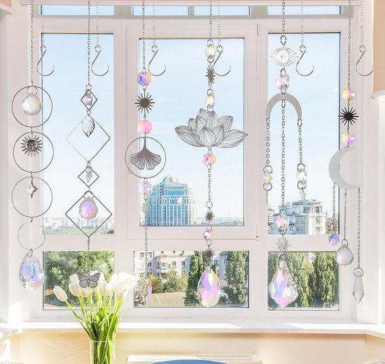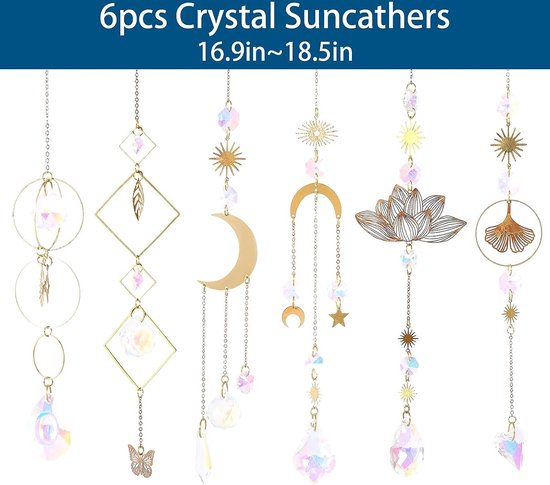 Super paquet : ce lot de 6 attrape-soleil multicolores est fabriqué avec des motifs de lotus, lune, soleil, cadre en métal et boule de cristal transparent, cordon en forme de goutte, avec d'excellentes techniques de coupe, des bords et des coins clairs et lisses, limpide, délicats et durables. Forme Soleil, Lune, Étoile - 40 Cm - Arc-en-Ciel Fenêtre Décoration élégante : vous pouvez utiliser l'attrape-soleil en cristal aussi bien à l'intérieur qu'à l'extérieur sur les fenêtres, les banquets, les lustres, les arrière-cours, les voitures, les plantes, la maison, le jardin, le mariage, le salon, les murs, le jardin d'hiver, la porte d'entrée, le rebord de fenêtre et le balcon, ou pour les affichages de mariage, les remorques de voiture, les arbres de Noël, etc. Personnalisé YU FENG Ornement Attrape-soleil En Cristal à Suspendre - Ange Gardien - Lotus - Décoration Arc-en-ciel - Chakra - Perles Prismes - Pour Fenêtre, Jardin Attrape Soleil Évitez tout contact avec des produits chimiques, des chocs et des frictions. Longueur d'environ 40 cm, parfaits pour suspendre aux fenêtres, dans le jardin ou même comme mobile. Fragiles mais tellement beaux – évite les chocs et nettoie... Il peut être nettoyé avec un chiffon en coton doux Remarque : bien que les cristaux à suspendre soient beaux, le cristal est très fragile. Attrapez le soleil : ces ornements de fenêtre attrape-lumière sont beaux et capturent la lumière magnifiquement, ils rayonneront de beaux petits arcs-en-ciel sur les murs, le sol et le plafond, les apporteront à vos fenêtres, illumineront votre maison et rendez votre maison joyeuse, un son agréable lorsque le vent souffle, vous donne un sentiment de paix et de tranquillité
