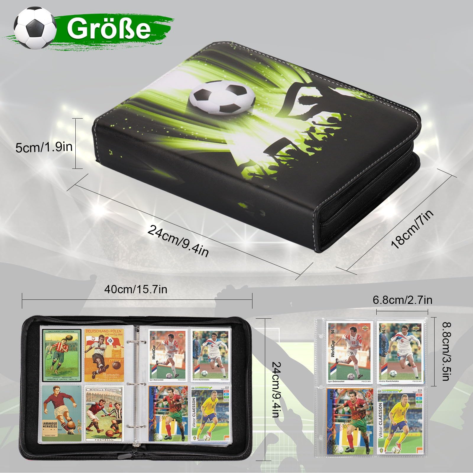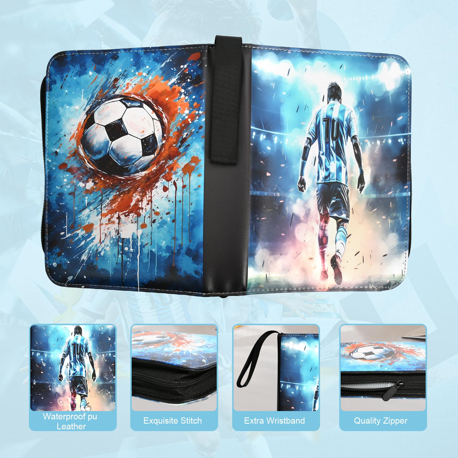 Que ce soient des cartes de football, des cartes d'anime ou d'autres objets de collection, ce sac de rangement est un choix idéal. Poches internes transparentes, de haute qualité et sans acide, protègent les cartes des dommages à long terme. ⚽ Sac de Rangement pour Livre de Cartes de Football en Cuir PU Imperméable: Album pour cartes d'entraînement et d'échange avec 4 emplacements (design recto-verso), 50 pages, 400 fentes pour cartes, adapté aux personnes de tous âges pour la collection de cartes. Matériaux de Haute Qualité: Fabriqué en cuir synthétique PU de haute qualité, doux au toucher, résistant à l'eau et facile à transporter. Fermeture à... Albums pour cartes à collectionner dispose de 3 clips à joint torique solides intégrés en acier inoxydable pour faciliter l'ajout ou le retrait des pages... Carte Adrenalyn Ballon De Foot Album De Collection De Football 720 Pochettes Album Pour Cartes De Tour De France Panini Foot Il allie praticité, élégance et portabilité pratique, en faisant le compagnon parfait pour les passionnés et les collectionneurs de cartes. Album de collection pour cartes de football, 50 pages, capacité de ⚽ Cadeau Exquis: Design à thème football: en collectionnant différentes cartes sportives, les enfants peuvent découvrir les stars du sport et cultiver leur intérêt pour le football. Fermeture à glissière pour garantir que les cartes ne tombent pas facilement. Que ce soit pour les jours de match ou les rassemblements, vous pouvez transporter votre collection sans effort.