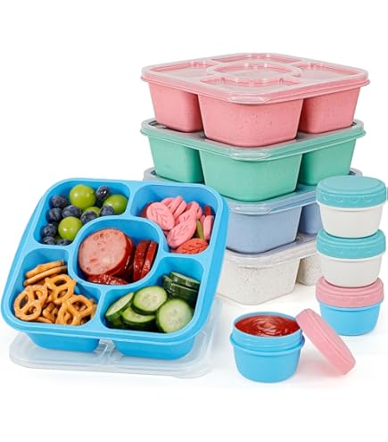 Portable,Reusable Les couvercles colorés facilitent l'identification; Matériau durable et réutilisable sans danger pour les aliments; Conception empilable pour un stockage... Boite Meal Prep Lot De 5 Boîtes Bento 4 Compartiments - Récipients Repas école Travail - Coloris Assortis - Réutilisables Meal Prep Containers Boite A Lunch OWill Boîte Bento 1200ml - 3 Compartiments