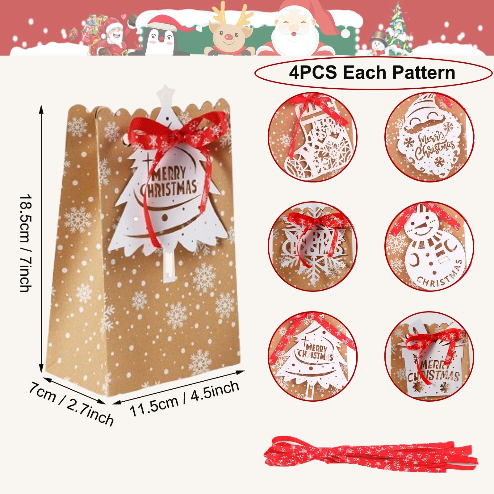 Sacs cadeaux en papier kraft : 🎄 Sac en papier kraft : -- Nos sacs cadeaux de Noël sont fabriqués en papier kraft de 250 grammes de haute qualité, légers et résistants. 🎄【Facile à assembler】Nos sacs de Noël avec poignée sont faciles à plier et à assembler, et sont livrés avec de la ficelle et des étoiles pour écrire vos bénédictions et vos souhaits. Spécification : Matériau : papier kraft Taille : 9,4 x 6 x 14 cm (après pliage) Dimensions de l'emballage : 16 x 24,5 x 2,5 cm Emballage : 24 * sacs de Noël Facilité d'utilisation (4,5/5) · Rapport qualité / prix (4,8/5) · Performance (4,4/5) · Simplicité d'entretien (4,7/5 Contenu de l'emballage : Vous recevrez 24 sacs cadeaux de Noël en kraft avec 6 motifs de Noël différents, 4 de chaque, dont le Père Noël, un bonhomme de... Sachet Kraft SAMSYOKI 24 Sacs Cadeaux De Noël Sachet En Papier Kraft Noel Avec D'étiquettes Boîtes Cadeaux De Noel Réutilisables Pochette Cadeau Noël Pour Chocolat Bonbons Biscuits Cadeaux (flocon De Neige Sachet De Noel -- Chaque sac en papier kraft a des encoches des deux côtés, ce qui est pratique à assembler après réception. Sacs Cadeaux De Noël,12 Sac Cadeau Noel Kraft,Sacs En Papier De Noël 🎄【Utilisation polyvalente】Ce coffret cadeau de Noël est idéal pour les bonbons, les biscuits, les chocolats ou les petits cadeaux. 🎄【Conception sur le thème de Noël】Ces sacs en papier de Noël ont 6 jolis motifs de Noël avec le Père Noël, un pingouin, un renne, un ours polaire et un arbre de Noël, etc. Peut être utilisé pour les fêtes de Noël, les mariages, les anniversaires, décorer votre fête et rendre votre fête spéciale