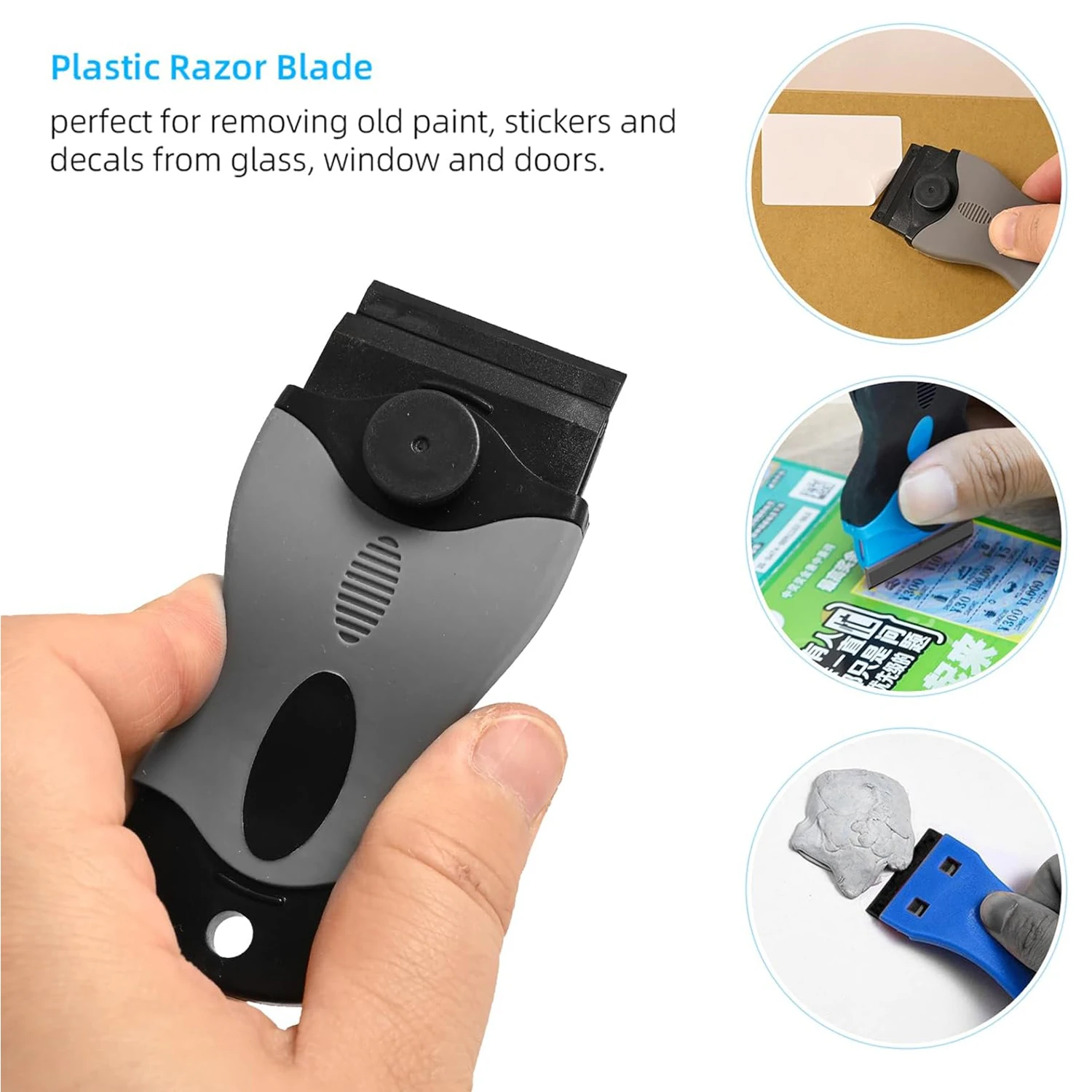 Pas de glissement ou de rétractation de la lame lorsqu'elle est utilisée de manière agressive. Durable : lot de 3 grattoirs à lame de rasoir + lot de 100 lames de rasoir de rechange à double tranchant en plastique pour durer toute une vie. Le grattoir utilise la fois des lames en m tal et en plastique. 3 Grattoirs à Lames De Rasoir En Plastique Et 100 Lames De Rasoir En Plastique A Double Tranchant De~p155333672 En raison de la différence entre les différents écrans, il peut y avoir une légère différence de couleur., Contenu : 3 grattoirs bleus , 100 lames oranges Nombreuses utilisations : utilisez-le comme un outil de grattage de verre, grattoir de nourriture, grattoir de voiture, grattoir de peinture, outil de grattoir de ticket de loterie, etc. Description du produit Description du produit : Caractéristiques : Emmenez-le partout : Il y a un trou au bas du grattoir en plastique, vous pouvez l'accrocher à votre sac, boîte à outils, etc. L'outil de retrait d'autocollants est idéal pour enlever le vinyle, les décalcomanies, les logos, les autocollants, les étiquettes et la peinture sur le verre... Design spécial en plastique qui permet de retirer les autocollants sans rayer et également de vous protéger contre les coupures accidentelles. Contenu de l'emballage 3 grattoirs en plastique et 100 lames en plastique Grattoir Plastique Extérieur Outil De Grattoir à Lame En Plastique Pour Vitres De Voiture, Dissolvant Grattoir Plastique Pas Cher Grattoir ergonomique confortable pour plus de contr le et de force, ce qui rend les projets de grattage plus rapides et 2 fentes maintiennent fermement la lame de rasoir en plastique, assurant que la lame ne glisse pas. Double bord de raclage, changeant rapidement le grattoir de remplacement. Outil pratique : Ces grattoirs disposent d'une poignée incurvée ergonomique pour plus de confort et de contrôle, faciles à passer sous le bord des autocollants et assez de puissance de préhension pour enlever les autocollants sans les rayer. Convient également pour une utilisation avec du mastic, du plâtre, du mastic et du mastic. Grattoir en plastique efficace : assez efficace pour enlever les étiquettes/peintures tenaces, et assez sûr pour garder vos mains loin des blessures. Ce que vous obtenez : le colis est livré avec 3 grattoirs en plastique et 100 lames de rasoir en plastique pour le remplacement, certainement assez de quantité pour répondre à vos besoins d'utilisation dans la vie quotidienne, vous aidant à enlever les résidus tenacesDesign parfait : ce grattoir ergonomique avec poignée incurvée pour...