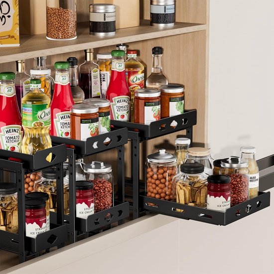 Remarque : il ne convient pas pour une armoire encadrée au bord L'armoire nécessite au moins 30,5 cm de haut, 27,9 cm de profondeur et 12,7 cm de large. Chaque niveau peut contenir 10 petits pots à épices. DABIGE Lot de 2 étagères à épices coulissantes pour armoire, qui est l'une de nos collections d'étagères à épices haut de gamme, vous permettant de trouver facilement les épices que vous voulez, afin que vos armoires ne soient plus en désordre. Et les paniers sont fabriqués en plastique ABS, solide et sans BPA, sûr et non toxique. Les glissières à extension complète vous offrent un accès facile à toutes les épices à l'intérieur des armoires supérieures de la cuisine. Liste des composants de l'étagère à épices unique ci-dessus : nous avons 2 étagères à épices. L'étagère à épices bien organisée ajoute toujours plus d'espace dans votre armoire Si vous avez des questions sur l'installation du rack ou si vous avez d'autres problèmes, n'hésitez pas à nous le faire savoir. Si vous n'êtes pas sûr que l'étagère à épices s'adapte à votre armoire, nous sommes toujours là pour vous aider. Les étagères à épices extractibles DABIGE sont livrées avec un panier à 2 niveaux qui vous aide à organiser les bouteilles d'épices encombrées dans un espace limité. Empêche efficacement la surface de se rayer et de rouiller. Caractéristiques générales: [Grande Capacité] : 4 /6 /8 pouces de large, 2 -1/8 pouces de haut par étagère, avec un max. capacité d'environ 20 pots/30 pots/40 pots. Nécessite une ouverture d'armoire d'au moins 4/6/8 pouces. [Utiliser un nombre limité d'armoires de cuisine] : Glissez facilement pour accéder à toutes les épices et bouteilles cachées dans les armoires, garde-manger... Veuillez mesurer l'armoire avant de passer commande Solution parfaite pour organiser vos épices : 2 étagères à épices extractibles pour armoire sont la solution parfaite pour organiser votre armoire. Lot De 2 étagères à épices Coulissantes à 2 Niveaux Avec Tiroir De SortWise Étagère à épices coulissante à 2 niveaux pour armoire, 12 Lot de 2 organisateurs verticaux à 2 niveaux chacun. Dimensions : 25,4 x 15,7 x 22,4 cm. Le système coulissant à roulement à billes est ultra-fluide même chargé... Toboggan lisse et silencieux Matériau durable et de qualité supérieure Contenu du colis : 1 panier supérieur., 1 panier inférieur., 4 tubes de support., 4 vis., 1 rail coulissant. Glissière lisse et garde-corps surélevée : les rails coulissants sont conçus avec un système de roulements à billes pour garantir un glissement fluide, de sorte que vous pouvez faire glisser l'étagère avec une charge complète de pots à épices sans effort. Veuillez d'abord mesurer votre armoire, elle nécessite au moins 30,5 cm de haut, 27,9 cm de profondeur et 17 cm de large. Il est livré avec une garantie de 365 jours pour les pièces défectueuses. Indispensables pour le stockage des épices, ils peuvent contenir différentes tailles et différentes formes d'épices. Retirez l'étagère à épices et trouvez l'assaisonnement que vous voulez. L'étagère à épices professionnelle de nos collections est plus esthétique, innovante et durable. Deux façons d'installation : l'organisateur d'assaisonnement coulissant s'adapte à presque toutes les armoires. Lot de 2 étagères à épices coulissantes pour armoire, organiseurs à épices coulissants, organiseurs d
