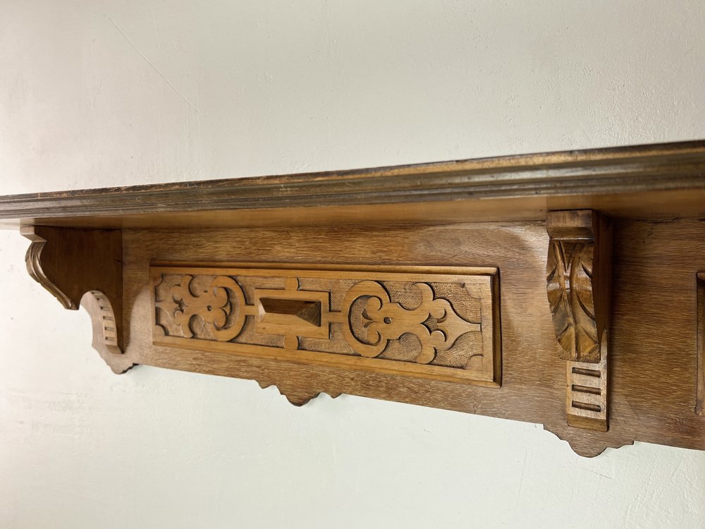 Avec étagère et cinq crochets pour serviettes. Emile Gallé French Art Nouveau Etagere at | ask furnishing 50 cm sans décoration Porte Manteau Mural Avec Etagere Étagère Murale Avec Crochet - Naklis Par Naklis Home Etagere Patere Porte Manteau Avec étagère et cinq crochets pour serviettes Objet : Etagère murale Epoque et style : Art Nouveau - début du 20ème siècle Caractéristiques - plaqué en noyer et massif - meuble français à la patine authentique - marqueterie ovale élaborée au-dessus - panneaux latéraux incurvés et ajourés - tiroir central et deux étagères au-dessus - supports muraux relativement simples grâce à des trous de fixation - parfait comme petite... Matériau : fer forgé, style antique , Largeur : env., 41 cm – Profondeur : env., 19 cm/Hauteur : env., 50 cm Jolie étagère murale classique inspiré du style des maisons de campagne à la française Nouvel accessoire doté d'un caractère unique pour faire revivre l'atmosphère du temps passé., ., ., ., Largeur : env., 41 cm – Profondeur : env., 19 cm/Hauteur : env.