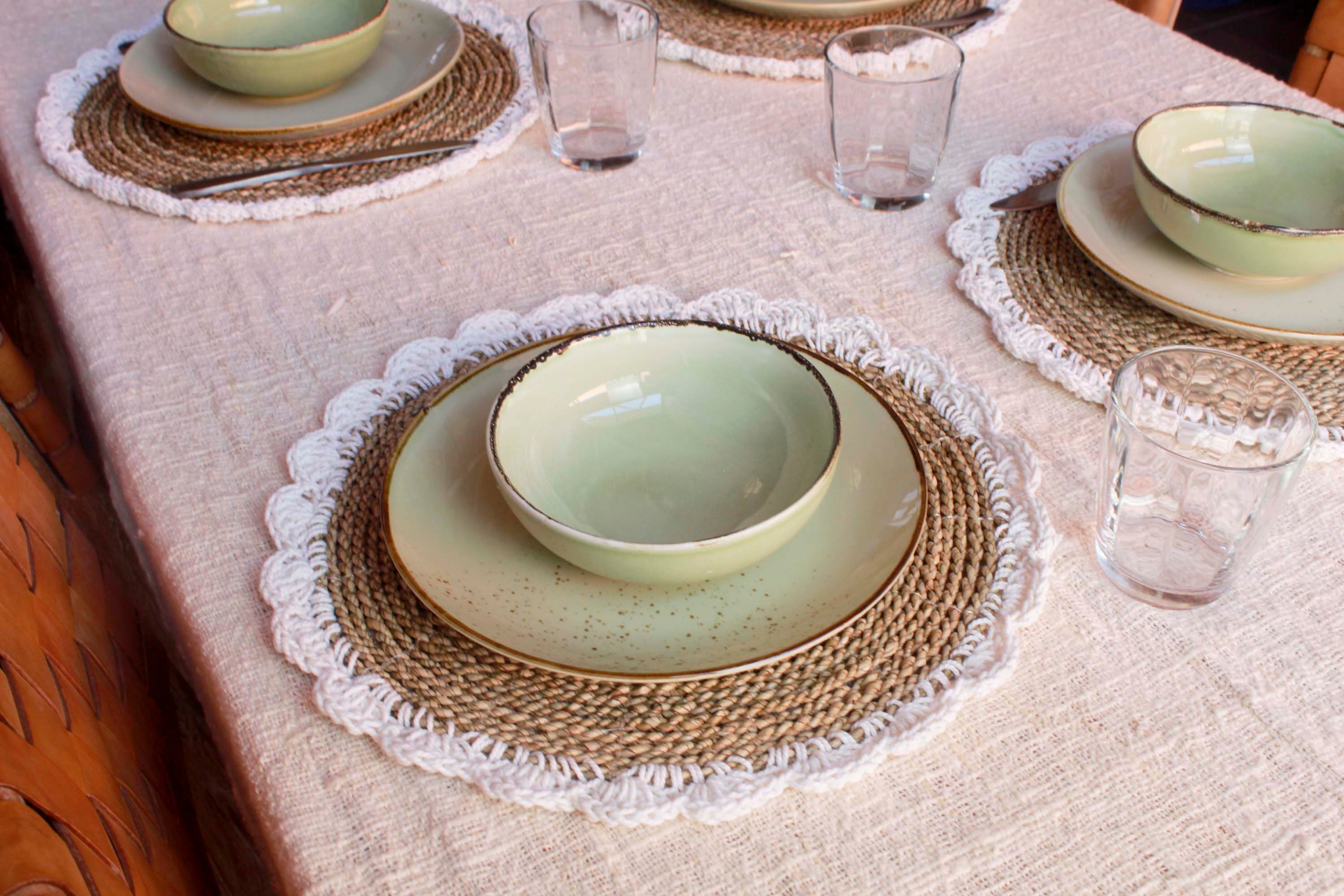 Elles sont simples, authentiques, soignées, parfaites pour une table qui ne renonce pas aux détails romantiques et rustiques. Crochet de table rond de mer , En papier , Disponible en 6 assortiments , Dimensions : Ø 38 cm Set Table Rond Sets De Table En Jute - Lot De 6 (10x10cm) - Style Bohème Dessous De Table Design Luxe Sets De Table Ronds, Services De Vaisselle, Lot De 6 Sets De Table Set De Table Noel Les sets de table Escambia en fibre de maïs sont des pièces élégantes qui ajoutent une touche naturelle à votre table. Un Amour De Tapis - Tapis de cuisine LOT 6 SETS DE TABLE BAMBOU Rose en Bambou Tapis motif Uni Marque : Jadorel - Paiement sécurisé ✓ Livraison rapide ✓ 30... Lumaca Lot de 6 Sets de Table Lavables,Set de Table (70% PVC, 30% Polyester), Résistants à la Chaleur, Antidérapants, pour Table de Cuisine et Restaurants,Beige 226 Plus de 100 achetés au cours du mois dernier 1199€ (2,00€/unité