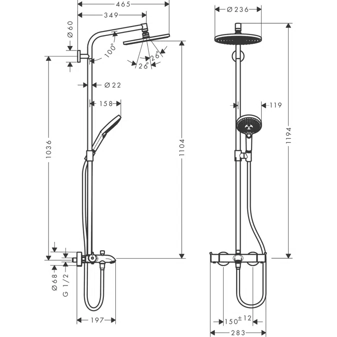 Hansgrohe Raindance Select S Colonne de douche 240 1jet PowderRain avec mitigeur thermostatique bronze brossé (27633140) | Leroy Merlin ✓ Conseils d’achat ✓ Comparatifs ✓ Avis & Tests produits Caractéristiques de la colonne de douche 240 Raindance Select S bronze brossé avec jet PowderRain : Comprenant : douche de tête, douchette, thermostatique de douche, flexible de douche, curseur Dimension: 240mm Jet PowderRain = Un plaisir de douche unique grâce à des microgouttelettes délicatement enveloppantes Longueur du bras de douche: 460mm Support de douchette réglage en hauteur Débit maximal sous 3 bars de pression: 16 l/min Débit du jet PowderRain (sous 3 bars): 16 l/min Bras de douche pivotant Thermostatique Ecostat Comfort Butée de confort à 40°C Limiteur d’eau chaude réglable Entraxe 150 mm ± 12mm Ne convient pas au chauffe-eau instantané Tube recoupable par le bas Qualification ACS (attestation de conformité sanitaire) Le produit comprend : Showerpipe avec thermostatique Rosaces Raccords S Matériel de montage Instruction de montage XXL Performance Une douche au grand format avec des jets incroyablement généreux Quickclean Les dépôts calcaires et la saleté sur les mitigeurs et les douches Hansgrohe disparaissent en un instant. Il suffit de frotter les picots en silicone souple Select Passez très facilement d'une fonction ou d'un type de jet à l'autre Matériau de la rondelle de jet : Métal Douche de tête Raindance Select S 240 2jet avec bras de douche 390 mm... Hansgrohe Pulsify Hansgrohe Raindance Select S Colonne De Douche 240 1 Jet PowderRain Avec Mitigeur Thermostatique, Aspect Doré Poli, 27633990 Hansgrohe Pommeau De Douche Réglage du type de jet : Commutation Select sur la pomme de douche Rondelle de jet à surface en deux modèles : chromée ou blanche