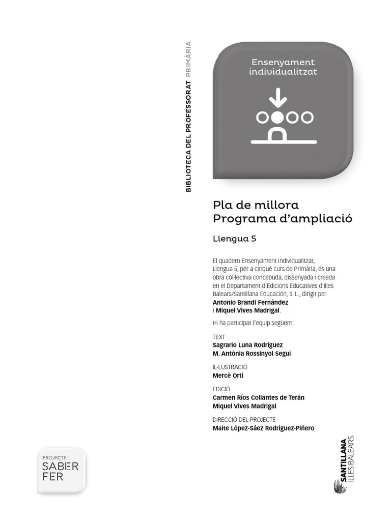 Cuaderno De Lenguaje. Puente 5º Curso De Primaria. Ejercicios Básicos LLENGUA CATALANA 5E PRIMARIA. GUIA D'AULA - ROSA BOIXADERAS SAEZ... Llengua Pont 5è Primària Nadal p>Pont Llengua 5 està orientat a alumnes de 10 a 11 anys que cursen cinquè de primària i necessiten reforçar les seves competències lingüístiques. Aquest quadern proporciona una base sòlida en gramàtica, ortografia i comprensió lectora mitjançant activitats variades i estructurades