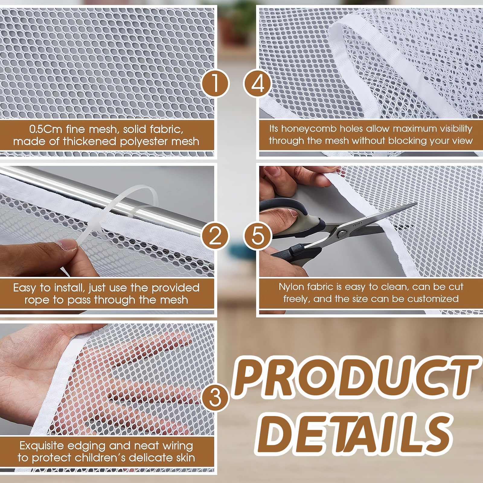 Sa hauteur permet de s'adapter à la plupart des rampes, balcons, terrasses, etc. Grâce au dispositif de fixation adapté, le filet de sécurité s'installe facilement et solidement sur les rampes d'escalier, les fenêtres ou les balcons. Protection Escalier Enfant Filet De Sécurité Pour Enfants, 450 X 90 Cm Bébé Filet De Protection Pour Balcon Et Escalier Clôture D'escalier Barriere De Securite En Maille Pour Chat Et Jouet Barriere De Securite Enfant Lit Même les utilisateurs sans expérience en installation peuvent le réaliser rapidement. Doux au toucher, il n'irrite pas la peau des enfants, leur offrant un environnement confortable. Vous pouvez combiner les filets pour augmenter la longueur ou les plier selon les besoins. Description du produit Barrière sécurité enfant Transparent et respirant, le filet de sécurité est doté d'une maille spéciale pour une visibilité optimale, n'affecte pas l'éclairage intérieur et maintient la pièce lumineuse et aérée. Il est applicable aux escaliers, aux fenêtres et aux balcons, à l'intérieur comme à l'extérieur. filet securite escalier Comparé à une maille ordinaire, il résiste à des tensions et des impacts plus importants, prévenant efficacement les dommages dus aux tractions externes ou aux collisions avec des objets. FAINCA 200 * 79 cm Filet De Protection Enfant, Balustrade Escalier Filet, Filet De Protection Enfant, Filet Protection Escalier, avec Cordon en Nylon Filet de sécurité en nylon pour enfants filet d'escalier pour Filet de Sécurité de la Balustrade, Filet De Sécurité Enfant Filet De... Facile à installer et à démonter, il suffit de passer la bande plastique ou le cordon d'attache dans le trou du grillage et de l'accrocher au poteau du balcon. Matériau : Maille épaisse Couleur : Blanc, Noir Protection complète: Le filet de protection escalier empêche également efficacement les enfants de passer à travers la clôture. Après l'installation, vérifiez régulièrement les accessoires du filet de sécurité afin de vous assurer qu'ils sont utilisés correctement. Long-term safety guaranteed. Child Stair Protection Dimensions: The safety staircase net measures 200 x 79 cm and has been carefully designed to fit a variety of sizes of stair railings, windows and balconies. Its height can fit most railings, balconies, terraces, etc. You can combine the nets to increase the length or fold them as needed