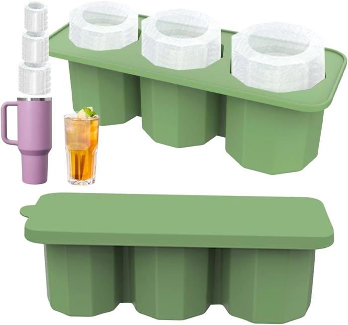 Conçu pour les tasses Stanley et doté d'un couvercle en silicone pour bac à glaçons, ce bac à glaçons en silicone fait 6 x 6 cm pour un total de 4 glaçons en forme de cylindre, parfait pour les tasses Stanley de 20, 30 et 1,2 l. Bac à glaçons en silicone – 3 tailles – Grand moule à glaçons Bac à glaçons Moules à glaçons avec silicone à dégagement facile et... En plus de cela, ces glaçons peuvent également être compatibles avec les verres et peuvent être utilisés seuls dans des verres à boisson, des tasses à café ou des verres à cocktail. Passe au lave-vaisselle, empiler dans un endroit sec après le lavage à la main ou le rinçage et le séchage au lave-vaisselle. Il a une forte résilience et Super ténacité, vous permettant d'enlever facilement les glaçons. Les bacs à glaçons avec couvercles amovibles peuvent être empilés dans le congélateur, les isolant des odeurs et de la poussière et les gardant frais. Que ce soit pour un pique-nique en plein air, une réunion de famille ou une pause au bureau, vous pouvez utiliser ces bacs à glaçons comme glaçons pour les boissons telles que le whisky, les cocktails, les jus, le thé et le café. Le bac à glaçons Ybenlld avec couvercle est fabriqué en silicone durable et sûr, nos grands moules à glaçons sont de qualité alimentaire, inodores, sans BPA, doux et sans fuite, et peuvent résister à des températures de -50 °C à 260 °C, gardant le bac à glaçons Stabilité même à basse température. Convient pour refroidir les boissons telles que le whisky, les cocktails, les jus, le thé ou le café. Profitez d'un été frais : les glaçons creux en forme de cylindre, fabriqués avec ce moule à glaçons, peuvent être empilés pour être compatibles avec des gobelets ou utilisés individuellement pour diverses boissons, café ou cocktails, whisky, jus de fruits, etc. Bac à glaçons multifonction en silicone pour une utilisation... Gourde Glacon Bac à Glaçons Moules à Glaçons Avec Silicone à Dégagement Facile Et Glacon Stanley Cup Ils sont également très pratiques comme cadeau pour les parents ou les amis, ou comme cadeau pour la fête des mères, la fête des pères, Thanksgiving, Noël et d'autres festivals.