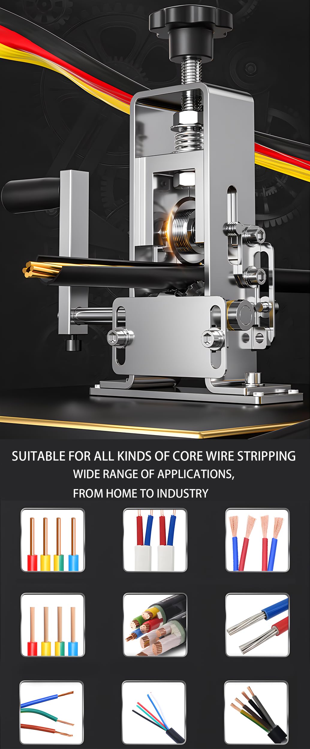 Marque. VEVOR ; Matériau. Alliage D'aluminium,Caoutchouc,Plastique ; Couleur. Argent et Noir ; Dimensions du produit. 31,8L x 10,2l centimètres ; Matériau de la... Dénudage sans effort : la machine à dénuder manuelle permet d'économiser du temps et des efforts grâce à son processus de dénudage automatisé, ce qui la rend parfaite pour les amateurs de bricolage et les professionnels La machine à dénuder les fils VEVOR gère les fils de 0,06 à 1,57 pouces, dispose de lames en acier traitées thermiquement durables et offre une efficacité élevée avec un fonctionnement manuel ou par perçage. Pince à dénuder manuelle Outil à dénuder les fils 1-25mm Machine à dénuder les câbles électriques Support de manivelle à utiliser avec une perceuse... Machine à Dénuder électrique Sms-030, Pince à Dénuder électrique PB150-M | Pince à dénuder TMC pour fil Puissance | RS