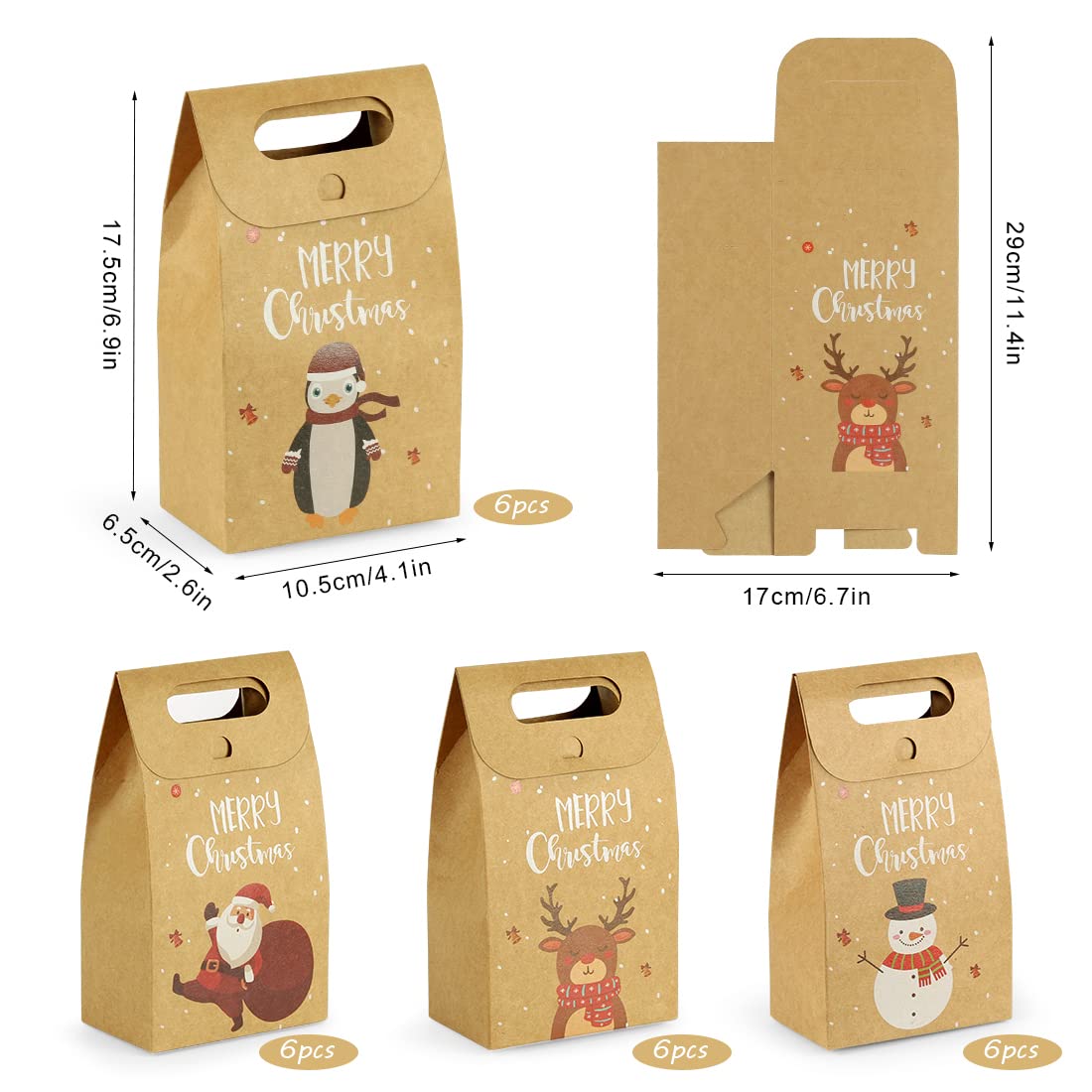 Choix Idéal: Le sac cadeau noel grand format est léger, facile à transporter, de structure robuste et difficile à casser, vous pouvez emballer le cadeau noel en toute confiance et surprendre vos invités. Design de Noël polyvalent : ce lot contient 24 sacs de Noël, chacun avec un motif de Noël différent, y compris le Père Noël, le bonhomme de neige... Sac d'emballage de Noël pour bonbons, sacs cadeaux en papier kraft avec autocoll Matériaux de Haute Qualité: les sacs cadeaux noël sont équipés d'une poignée, ce qui augmente non seulement la commodité d'utilisation des sac cadeaux de noël, mais également le design double couche sur le dessus de chaque sac bonbon noel est particulièrement solide et durable. Sac Papier Deco Sac Cadeau Noel 24 Pièces,Pochette Cadeau Kraft Noel,Sacs Cadeaux De Noël,4 Styles (6 Pour Chaque Style),Sac En Papier De Noël Avec Poignée,Pour Les Cadeaux De Noël, Collations,petites Surprises Sac De Noel Dimensions pratiques : Avec une taille de 22,5x11,8cm, ces sacs sont parfaits pour emballer des biscuits et des bonbons. Kit complet:12 sacs cadeaux et... Sac de Noël: vous recevrez 24 sacs cadeaux de noël. Les sacs cadeaux de noël en huit motifs et couleurs de décoration de noël différents attirent particulièrement l'attention et deviendront le point culminant de votre fête de noël.