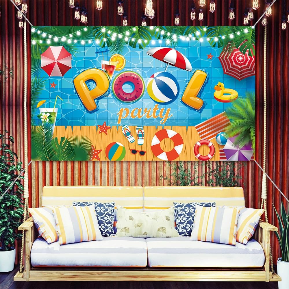 Pool Party Bannière D'été - Décorations De Fête à La Piscine - Bannière De Deco Piscine Pool Party DESIGN ATTRAYANT : Créez la toile de fond parfaite pour votre fête au bord de la piscine avec notre bannière de fond de piscine vibrante avec l'adorable texte Pool Party au centre. Facile à utiliser : Accrochez simplement les bannières à travers l'œillet en cuivre ; La bannière hawaïenne peut être utilisée à l'intérieur ou à l'extérieur, sur les portes, les murs, les fenêtres, les pièces, les jardins, les plafonds, les porches et même comme toile de fond pour photo. Plage d'été | Vecteur Premium Trouvez 1pc bannière de toile de fond pour fête dété , fibre de polyester, décoration festive durable pour jardin, cour et fêtes intérieures/extérieures... Ajoutez une touche amusante à vos décorations de fête avec cette superbe toile de fond. Bannière d'anniversaire 18 ans - Toile de fond avec inscription 【Facile à utiliser】 La décoration de fond de bannière de fête à la piscine comprend 4 trous et 1 cordon de 10 mètres, qui peut être accroché directement à la maison, dans le jardin, au mur ou à l'arbre, etc. Avec le lettrage ludique « Pool Party » au centre, cette bannière est parfaite pour créer une atmosphère animée et festive lors de toute célébration au bord de la piscine. 【Décorations de fête tropicale d'été à la piscine】 la toile de fond de la fête d'été à la piscine présente un design vibrant et coloré avec des imprimés de feuilles de palmier, de parasols, d'ailes d'eau, de ballons de plage, de fleurs et de planches de surf. Si vous achetez quelque chose via n'importe quel lien, je Matériau : tissu polyester avec imprimé vif.