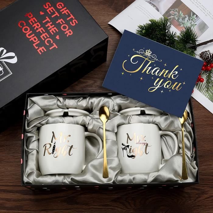 Passe au lave-vaisselle et au micro-ondes. Boîte cadeau robuste et belle : notre coffret cadeau est prêt à être offert et a été spécialement conçu avec un motif de couvercle adapté à l'offrir, en utilisant des matériaux précieux pour garantir la qualité. Le copywriting amusant est l'incarnation de l'amour entre homme et femme. Les couvercles durent plus longtemps et laissent de la place pour les cuillères afin qu'elles soient facilement accessibles et stockées. WXYTXHYQ Cadeau Mariage Cadeau Couple Mr Mrs Tasse Couple, Marbre Céramique Amoureux Mug Couple Cadea-u pour Couple, 400ml Tasse Monsieur Madame pour Cadea-u Anniversaire Mariage, Fiançailles Imaginez passer du temps avec vos proches et siroter votre boisson préférée accompagnée de café le matin, de thé de l'après-midi, de lait le soir, etc. Profitez de chaque moment d'amour ensemble. Le design monogramme doré est simple et élégant. Meilleurs cadeaux de mariage pour les jeunes mariés, ressentez le romantisme de la vie avec celui que vous aimez ! Élégant fait à la main : l'ensemble de tasses à café en céramique a des parois épaisses, pas de rayures, et le motif et les inscriptions dorées restent en bon état après le lavage. Cela peut bien protéger la tasse. Prolongez la célébration avec des créations rendant hommage à ce jour si particulier. Découvre z des robes de mariée de créateur et des tenues pour les invitées, ainsi que des tenues pour invités masculins ou choisissez des costumes de mariage pour homme, parfaitement ajustés, pour accompagner les instants les plus mémorables Cadeau romantique pour les couples, cadeau de mariage pour la mariée et le marié, pour des fiançailles ou comme cadeau d'anniversaire. Cadeau De Mariage Pour Mariés Cedilis Tasses Mr Et Mrs De 414 Ml, Ensemble Cadeau De Tasses à Café En Céramique Liste Des Cadeaux De Mariage Ce que vous obtiendrez · 1 x tasse Mr 12oz (gris) · 1 x tasse Mme 12oz (rose) · 2 x couvercles de tasse · 2 x cuillères dorées · 2 x ouvre-bouteille clé · 2 x sous... Cadeaux de mariage pour les jeunes mariés : chaque ensemble de tasses à café cadeau de mariage a un motif doré peint à la main par des designers, et différentes lumières dorées peuvent être vues sous différents angles. Design unique : structure en marbre naturel, chaque pièce est unique. Le tout emballé dans une boîte cadeau de qualité supérieure. Convient pour différentes occasions. Le motif et l'impression marbrée de chaque ensemble de tasses avec anse sont uniques et exquis, symbolisant un amour unique.