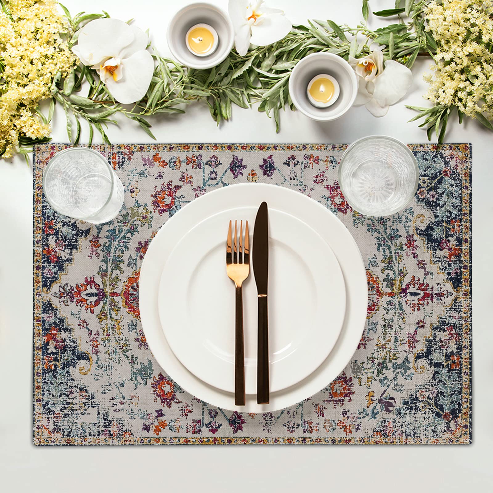 Lot De 6 Sets De Table Ethniques Bohèmes Lavables En Lin Pour Cuisine