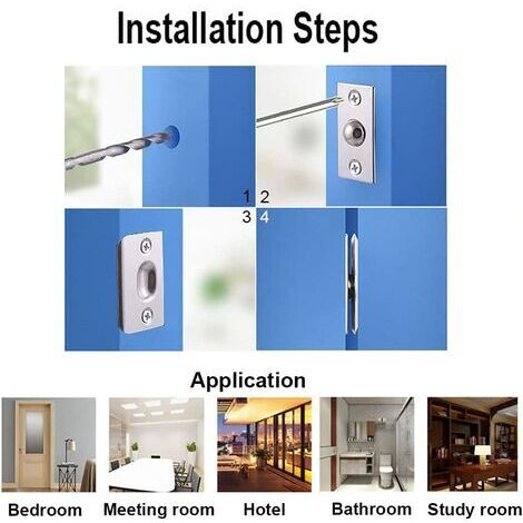 Quincaillerie de porte en forme de bille qui convient à presque tous les placards et portes. Instruction : Pour les étapes d'installation détaillées, veuillez consulter la 5ème image. poing ruban cylindre porte de placard effet industriel Massage Alice Grand unive Serrure Pour Placard PATIKIL Lot De 4 Loquets De Porte De Placard Réglables En Acier Inoxydable, Finition Chromée Avec Gâche Et Vis Pour Portes Intérieures, Noir Verrou De Placard Taille : Couleur : argent ; Matériau : acier inoxydable, cuivre ; Taille de la plaque frontale : 53x26mm/2., 1x1 pouce (Lxl) ; Taille du corps en laiton : 27x18., 5mm/1., 1x0., 7 pouce (Lxl) ; Liste des colis : 4 x petite bille de verrouillage de porte de placard, 16x vis PATIKIL Lot de 4 petits loquets de porte de placard réglables en acier inoxydable, finition chromée avec gâche et vis pour portes intérieures... Nous offrons à chaque paquet de loquet de porte la même couleur que la plaque de verrouillage, rendant chaque paquet de loquet de porte de placard plus beau et harmonieux. Vous pouvez voir la taille correspondante sur la deuxième image. InstructionPour les étapes d'installation détaillées, veuillez consulter la 5ème image. Nous vous proposons un choix varié d