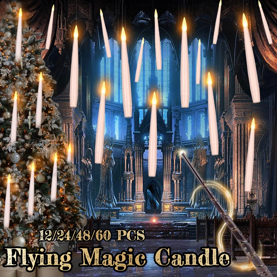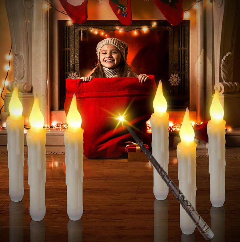 Ensemble de Bougies Flottantes: la flamme vacillante réaliste ressemble à une véritable flamme de bougie vacillante, créant une atmosphère unique et magique dans n'importe quelle pièce. Que ce soit pour une fête à thème cinématographique ou un dîner confortable avec des proches, vous pouvez les suspendre à un lustre, au plafond ou même au mur. La baguette peut passer à la fonction minuterie en appuyant sur le bouton T. Cet ensemble de bougies sans flamme est équipé d'une ligne de pêche de 5.2 pieds (à peine visible), vous pouvez suspendre ces bougies au plafond ou au lustre pour créer l'effet de « bougies flottantes » pour une soirée à thème de film Décorations mignonnes : ces bougies LED sans flamme avec télécommande baguette magique sont parfaites pour les décorations de chambre, de fête, d'Halloween... Bougie Harry Potter Lot De 12 Bougies Flottantes Avec Baguette Magique Bougies Flottantes à Suspendre Il s'agit des vacances de décoration parfaites pour Christmas, avec des services, des cheminées, des tables, des décorations de maison et d'extérieur. Lot de 12 bougies LED avec minuterie et télécommande, en cire rose, lumière blan Facile à Utiliser: coupez le fil de pêche dans l'emballage à la longueur souhaitée, soulevez la tête de la bougie, enroulez la ficelle autour d'elle et accrochez-la au plafond à l'aide de notre crochet collant. Il s'allume pendant 6 heures, s'éteint automatiquement après 6 heures, s'allume automatiquement après 18 heures et se répète selon un cycle de 24 heures. Chaque bougie led flamme vacillante est alimentée par des piles AAA (non incluses).