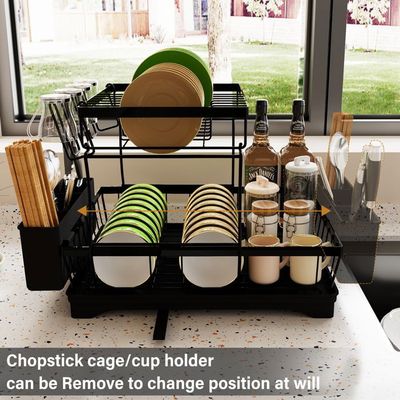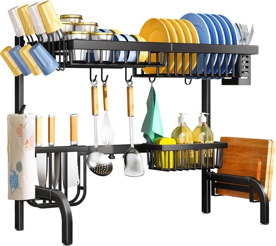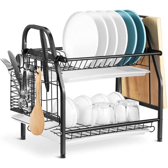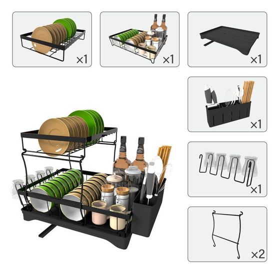 Egouttoir A Vaisselle 2 Etages Boosiny Égouttoir à Vaisselle, Egoutoire Vaisselle Cuisine En Acier Inoxydable Blanc Grand Avec Porte Ustensiles Porte Gobelets Support Planche à Découper Et Tapis D'Égouttage égouttoir Leroy Merlin Tous les accessoires pour le montage., Remarques : 1., Veuillez mesurer les dimensions appropriées avant l'achat. Le panier pour baguettes, articles d'hygiène, couteaux, planches à découper et crochets peut être déplacé librement. Dimensions totales du produit : 85 x 28 x 82 cm. Différents types de paniers et une capacité de charge élevée vous permettent de ranger facilement divers ustensiles de cuisine pour répondre à vos besoins quotidiens. Nombre d'étagères : 2., Finition : thermolaquage. Description : Un support de cuisine multifonction est la clé d'une cuisine bien rangée. Utilisation : Convient pour le stockage des épices, de la vaisselle, des baguettes, des planches à découper, des couteaux et des fourchettes, des savons, des éponges, des planches à découper, même des fruits et légumes et d'autres ustensiles de cuisine dans la cuisine. Assemblage nécessaire : oui. Design bien pensé : vous pouvez placer différents ustensiles de cuisine en fonction de la distance entre le filet à vaisselle (0,79 pouces) et le filet de bol (4 cm). Hauteur de la balustrade : 6 cm., Poids net : 4 kg. Grande capacité de charge : la structure triangulaire stable a une force plus uniforme et moins sujette au basculement. Type de montage : sur évier/plan de travail de cuisine Charge maximale (chaque niveau) : 10 kg. Résistant et durable : Fabriqué en acier au carbone de haute qualité, ce produit bénéficie d'une finition peinture cuite et d'une structure robuste... 1 diagramme d'installation en anglais. Largeur du plateau supérieur : 25,5 cm. Détails : Ventouse antidérapante : la hauteur de la ventouse antidérapante en bas peut être ajustée en fonction du plan de travail de l'évier de cuisine, ce qui augmente encore la stabilité. Grand espace de rangement : différentes étagères (plateau d'assiette, plateau de coupe, plateau de planche à découper, panier à baguettes, panier pour articles d'hygiène) et 8 crochets permettent de ranger séparément les bols, assiettes, bols et produits de nettoyage de cuisine. Égouttoir à vaisselle réglable 2 niveaux - 255 à 851 cm - avec Caractéristiques : Couleur : noir., Style : moderne. Contenu de la livraison : 1 égouttoir à 2 niveaux sur l'évier.