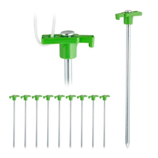Fixation rapide et efficace des tentes et auvents Avec vitre en plastique pour protéger les sangles en caoutchouc de la tente. Fixation rapide et efficace des tentes et des stores EisenRon Camping Set 10x240 mm - 10 Stück Schraubheringe für Zeltbefestigung mit Description du produit Exemples d'utilisation : Maintien sûr sur presque toutes les surfaces. Avec une visseuse sans fil, les vis à tête plate sont vissées fermement au sol en un rien de temps sur la tente ou le auvent. Kit de caping EisenRon 10 x 240 - 10 pièces de piquets à vis pour... Même en cas de vent fort ou de tempête, les vis peuvent être facilement vissées. La rapidité est le grand avantage, ainsi que le retrait facile et rapide des vis lors du démontage, sans avoir à frapper avec le marteau. Véritable alternative aux piquets à visser en plastique. Tenue 5 fois supérieure à celle d'un piquet en métal traditionnel. Nos concepteurs campeurs ont conçu ces piquets pour fixer votre tente et ses haubans au sol. Notre motivation ? Vous proposer un kit pour remplacer vos piquets de tente perdus, ou trop tordus. Sans taille. Résistance à la corrosion. Pour toutes les tentes de camping sur terrains variés Piquet De Tente A Visser Kit 10 Piquets De Tente à Visser - 200mm - Pour Fixation Rapide Et Solide Rondelle Camping 5 fois mieux que les piquets en métal traditionnels.
