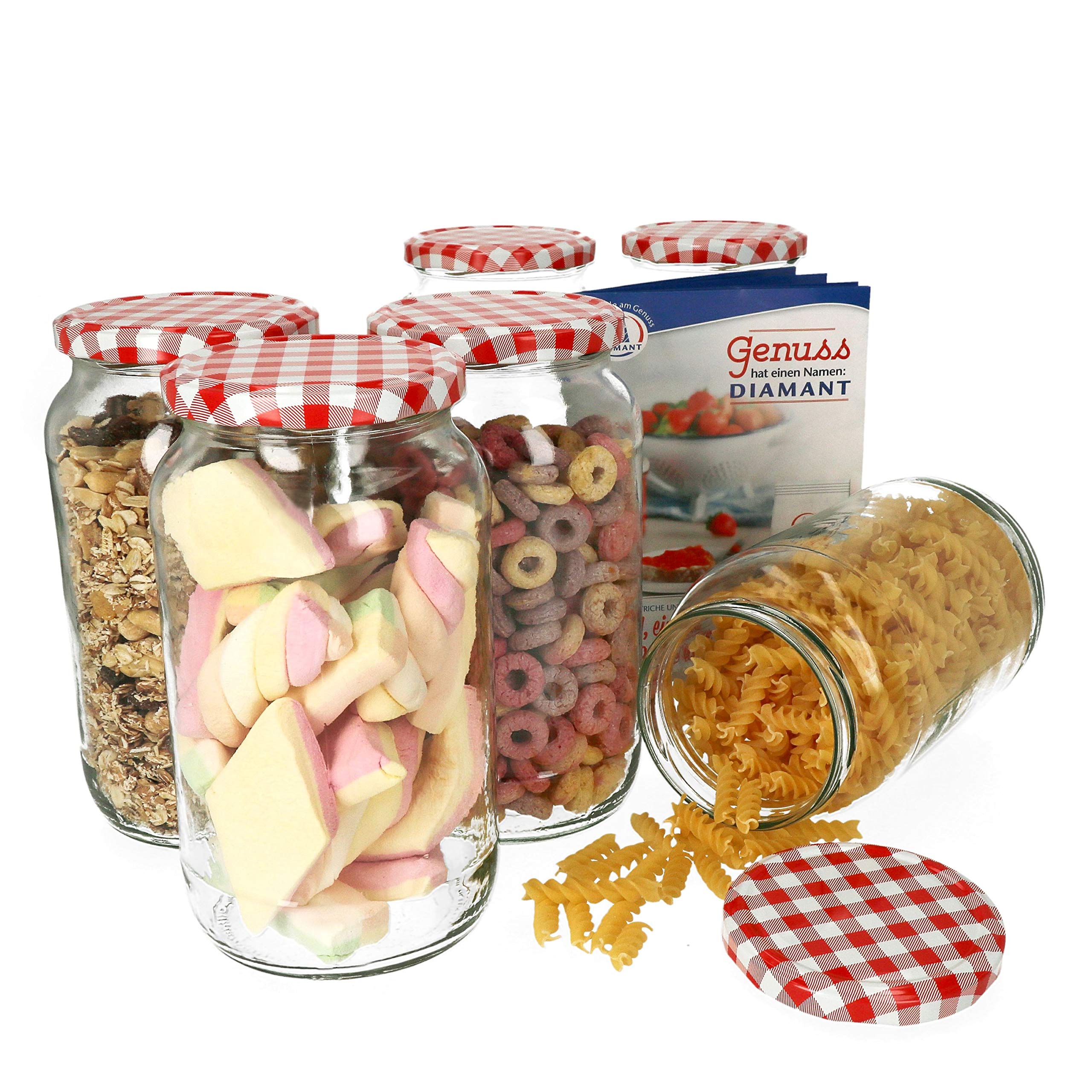 Confiture : confiture, gelée, saucisses, fruits et légumes, autres échantillons de prix. Lot De 6 Bocaux En Verre Rond 1062 Ml Avec Livret De Recettes - Bocaux Pour Fruits Et Confiture - Verres à Carreaux Rouges Même les confitures, confitures, le mus, la gelée ou le compote de fruits peuvent être parfaitement cuits dans le verre rond. Surprenez votre famille, vos amis ou vos clients avec des friandises personnalisées. Le grand bocal en verre peut contenir 1062 ml et est idéal comme pot à concombre ou pour conserver de nombreux menus et accompagnements. Même les confitures, confitures, le mus, la gelée ou le compote de fruits peuvent être parfaitement cuits dans le verre rond Cuisson dans le verre : gâteaux, pâtisseries, desserts, pâtisserie, quartz de fruits, crampons etc. Bouchon à vis pratique avec un diamètre extérieur de 85 mm. Le set est un produit polyvalent à prix avantageux avec un bocal et un couvercle exactement adaptés. Le couvercle BasicSeal sans BPA est robuste et facile à manipuler, sans préchauffage Remplissez de conserves ou conservez la nourriture fermée hermétiquement dans un bocal de 18 cm de haut. Cet ensemble est l'équipement de base idéal pour la conservation et la conservation. Lot 6 pots de conservation 1062ml + couvercles cuivre - Muscadin Le grand bocal en verre peut contenir 1062 ml et est idéal comme pot à concombre ou pour conserver de nombreux menus et accompagnements. Pour les aliments pasteurisés à froid, relativement agressifs avec un pH inférieur à 3, le MHD est de 24 mois. Sous réserve de remplissage à chaud, les aliments peuvent être fermés sous vide jusqu'à 3 ans grâce à un couvercle spécial avec joint. 1 livret de recettes 16 pages 120 x 165 mm Lot de 6 bocaux de conservation de 1062 ml + 6 couvercles Twist-Off TO82 rouges à carreaux + livret de recettes
