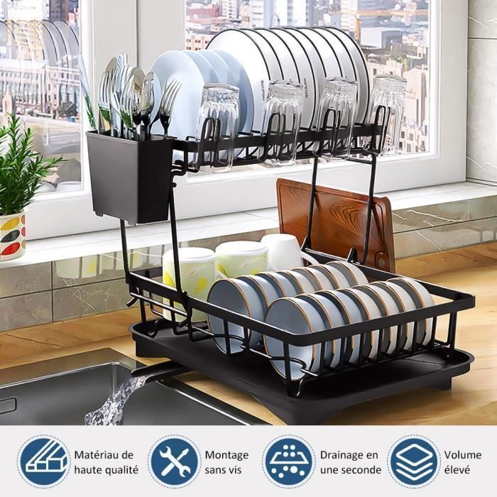 Matériaux de qualité supérieure : notre vaisselle d'égouttoir est fabriquée en acier inoxydable 304 de qualité supérieure, ce qui la rend résistante à la rouille et à la corrosion. Avec son design spacieux, il peut contenir assiettes, tasses, verres, bols, couverts, casseroles, poêles et bien plus encore. Système de drainage automatique : notre égouttoir à vaisselle est équipé d'un égouttoir amovible avec un design central concave qui permet à l'eau de s'écouler rapidement vers une rotation rotative à 360 ° et rétractable. Le métal robuste et antirouille Le bec pivotant rétractable tourne à 360°, et vous pouvez choisir d'ajuster la position du panier à vaisselle en fonction de... Étendoir À Linge Pour Comptoir De Cuisine, Égouttoir À Vaisselle De... égouttoir à Vaisselle Cuisine LZDMY Égouttoir à Vaisselle Noir à 2 Niveaux En Acier Inoxydable Avec égouttoir Pour Vaisselle La surface est si lisse que vous n'avez pas à vous soucier des rayures. Machine A Cafe Égouttoir à Vaisselle 2 Niveaux, égouttoir à Vaisselle En Aluminium Avec Porte Gobelet Et Porte Couverts Egouttoir A Vaisselle Avec Bec Verseur Rotatif Noir Egouttoir Vaisselle Gain de place : le support de séchage LIONONLY est conçu pour contenir différents types et tailles d'ustensiles de cuisine. Pour une surface de travail sèche et bien rangée. Avec sa grande capacité, vous pouvez économiser jusqu'à 50 % d'espace dans votre cuisine, ce qui la rend plus organisée et plus spacieuse.