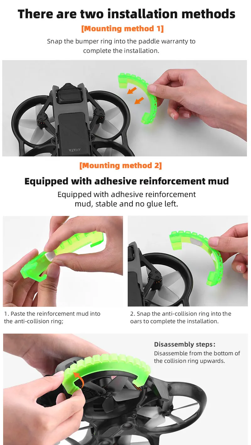Description : Matériau : PP Modèles applicables : Convient pour Avata Couleur : noir, vert, orange (en option) Poids net : 0., 78oz(22., 3g) Product size:3., 62*1., 37*0., 62in(9., 2*3., 5*1., 6cm) Liste d'emballage : 4 pièces Anneau de protection 1 pièce de boue de renforcement en pâte Note : 1., ne comprend pas les drones, 2., transition : 1cm=10mm=0., 39inch, 3., Puisque la taille et le poids sont mesurés manuellement, en raison des différentes méthodes de mesure, il peut y avoir certaines erreurs dans le poids et la taille du produit, mais l'erreur n'affecte pas l'utilisation normale du produit, veuillez confirmer que vous connaissez et acceptez l'erreur avant d'acheter ; Mallette Rangement Pour Drone DJI Avata, Sac Protection Housse Transport Pour DJI Avata/pour DJI 【Facile à transporter】 : Conception légère, ne pesant que 22,3 g pour un ensemble complet, n'affectant pas l'utilisation en vol. REMPLACEMENT POUR DRONE AVATA 2] Modèle applicable : assurez-vous de la compatibilité avant d'acheter.[PROTECTION EFFICACE CONTRE LES COLLISIONS] Protection contre les collisions : le tampon anti-collision réduit les dommages causés par les collisions.[MATÉRIAU ROBUSTE À HAUTE RÉSISTANCE] Matériau à haute ténacité : flexible et résistant aux chocs pour une durabilité pendant les... Autocollants Stickers pour drone DJI Avata et Casque DJI FPV Goggles V2 Vol stable : la protection d'hélice Avata adopte un design aérodynamique conduit et précis pour une circulation de l'air plus fluide et un vol plus sûr.Sûr Installation rapide : l'anneau de pare-chocs s'installe sans outils et se clipse sur la protection d'hélice Avata 2, ce qui est pratique et facile à installer, et ne rayera pas le corps du drone 【Facile à installer】 : Équipé d'argile de renforcement adhésif, qui est stable et ne laisse pas de colle, facile à installer et à retirer. 【Matériaux de qualité】 : Fabriqué en matériau robuste, qui résiste aux impacts et réduit les dommages accidentels à la machine.