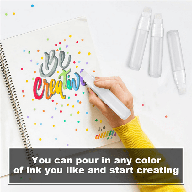 Quantité raisonnable : vous recevrez 3 marqueurs vides rechargeables avec une pointe de 15 mm, offrant une flexibilité pour basculer entre les couleurs Lors du remplissage d'encre, il doit être tourné vers la gauche pour enlever la zone de pointe, puis serré vers la droite après le remplissage du matériau. La pointe du stylo est fabriquée en polyester et acrylique, fiable et solide, vous offrant une expérience confortable ZALHIN 10 Pièces Marqueurs Rechargeables, Peinture Vierges Idéal pour les artistes, les débutants pour la peinture et le dessin. 4 tailles différentes : vous recevrez 5 marqueurs graffiti vides en 4 tailles. Les tailles de pointe sont respectivement de 10 mm, 15 mm, 30 mm et 50 mm... Matériau fiable : ces marqueurs vides sont fabriqués en polypropylène de haute qualité, qui n'est pas facile à casser ou à déformer. Répond à différents besoins : vous recevrez 4 fournitures de graffiti, chacune équipée d'une pointe de stylo de 15 mm, adaptée à diverses créations artistiques... L'opération est simple et ne prendra pas trop de temps Facile à utiliser : le stylo de peinture vide adopte un design de filetage inversé. Flacon Et Vaporisateur Vide - 3 Flacons Vides Rechargeables Verre Ambré