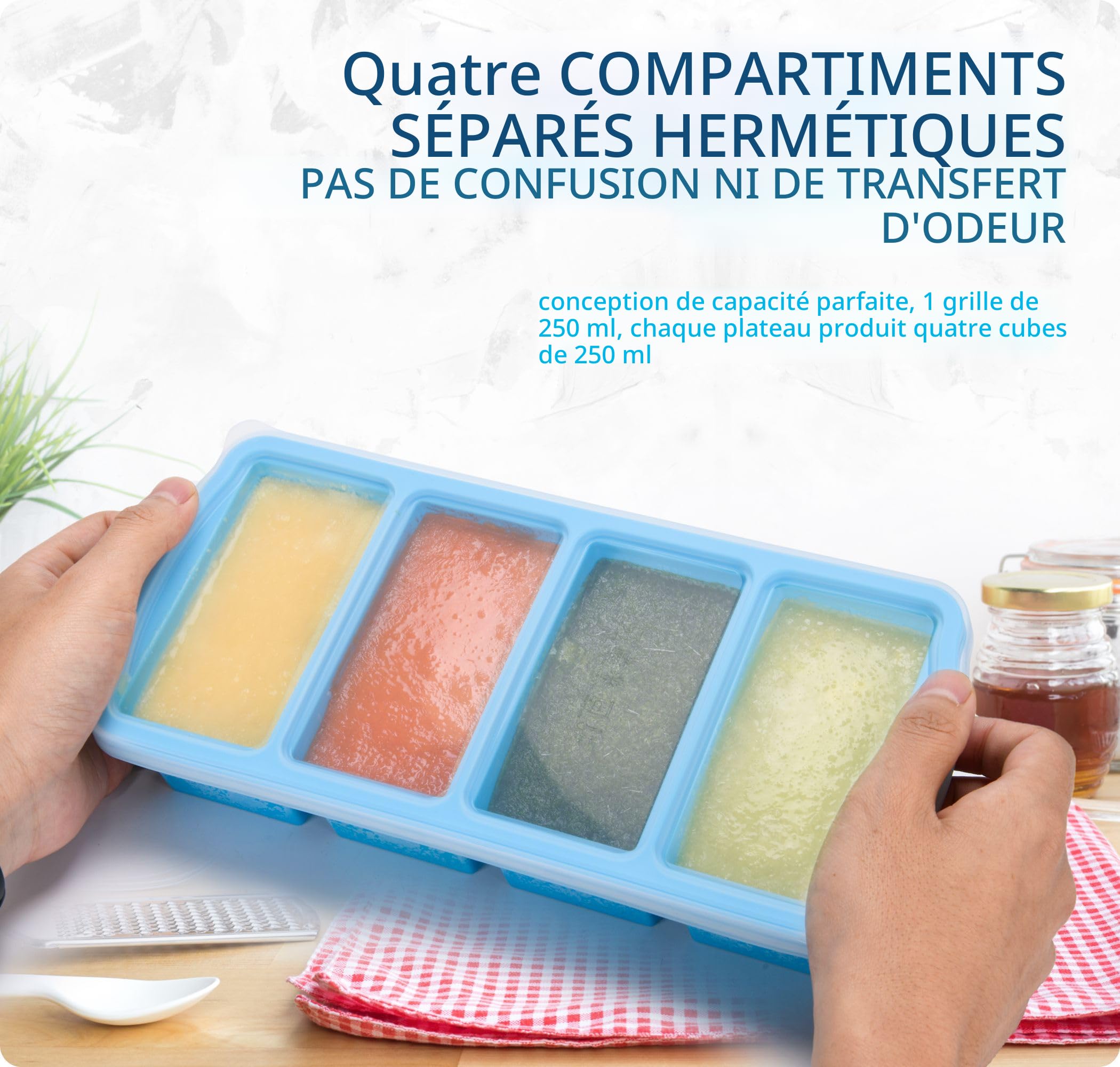 Excellente étanchéité et résistance aux fuites : le lot de boîtes de congélation à soupe adopte une fermeture à pression de style entourant, qui peut sceller les cloisons entre chaque compartiment, assurant que les aliments et les odeurs ne fuient pas dans d'autres compartiments. Caractéristiques : Article : bac de congélation avec couvercle., Matériau : silicone. Ce bac à glaçons en silicone pour congélateur est résistant aux températures élevées et basses, et peut être utilisé pour congeler en profondeur les aliments dans le réfrigérateur ou pour chauffer les aliments dans le four. Application : congélation de soupes, ragoûts, sauces, restes et plus encore. Les capuchons en silicone offrent non seulement une meilleure étanchéité et une meilleure prévention des fuites, mais sont également plus faciles à ouvrir et à fixer sur des palettes, contrairement aux capuchons en plastique qui sont sujets à la casse. Chaque section des moules de congélation en silicone de 2 tasses est graduée avec des marques de 125 ml et 250 ml, permettant une mesure plus facile lors du remplissage. Plateaux de congélation en silicone avec couvercle, conteneur de 1/2 tasse de congélation à soupe, grands moules à glaçons avec anneau en acier renforcé pour... Les plateaux de congélation en silicone avec couvercle sont un must have pour tous ceux qui congèlent des soupes, des ragoûts, des sauces, des restes, à peu près tout. Chaque moule à soupe en silicone est équipé d'un cadre en silicone intégré, ce qui le rend plus pratique à transporter et à empiler, économisant efficacement de l'espace dans le réfrigérateur. Et le plateau a beaucoup d'espace pour l'expansion. Le plateau de congélation est équipé de poignées antidérapantes aux deux extrémités, ce qui le rend plus pratique à transporter et à utiliser. Parfaits pour congeler des soupes, des lasagnes et des casseroles. Souper Cubes Achetez Le Plateau De Congélation En Silicone Rose Pour Aliments Pour Congelation Soupe Le côté du plateau est marqué avec des marques de 250 ml et 500 ml. Ces récipients de congélation en silicone rendent la congélation, la cuisson et le stockage plus faciles et plus pratiques, et peuvent être nettoyés au lave-vaisselle. Ces bacs à glaçons en silicone pour congélateur avec couvercle sont livrés avec des poignées antidérapantes, ce qui les rend plus pratiques à transporter et à utiliser. Fdit Bac à glaçons en silicone Lot de 2 plateaux à glaçons en silicone Profitez simplement d'un stockage plus pratique des aliments, de la soupe et du temps de préparation des repas avec ce plateau de congélation en silicone avec couvercle Pourquoi nous choisir ? Ce plateau de congélation en silicone avec couvercle est fabriqué en silicone de qualité alimentaire de haute qualité, sans BPA, robuste, résistant à l'usure et peut être réutilisé pendant une longue période.