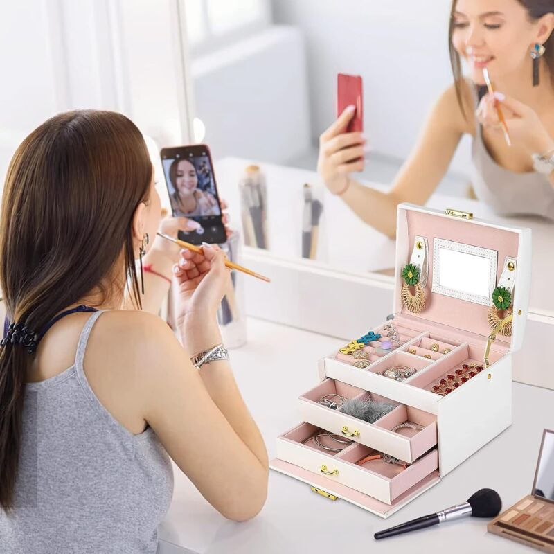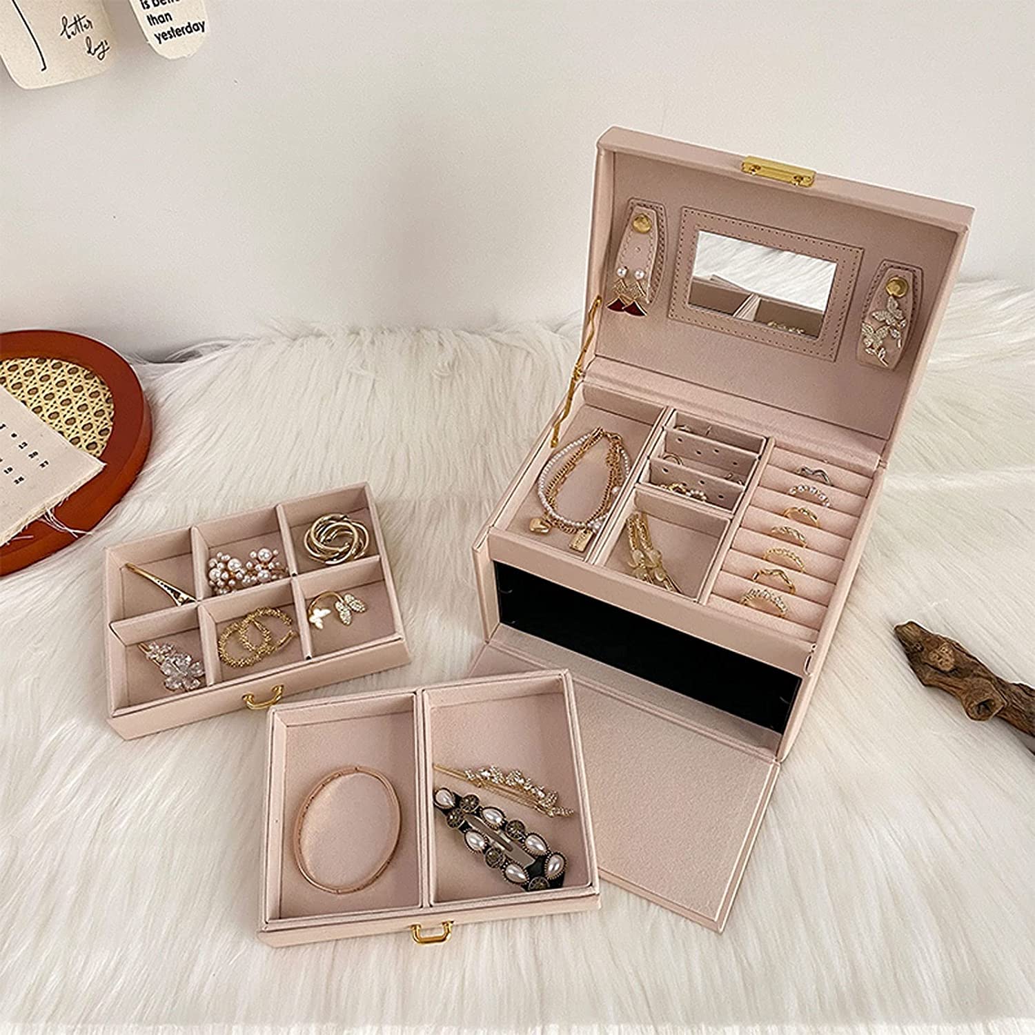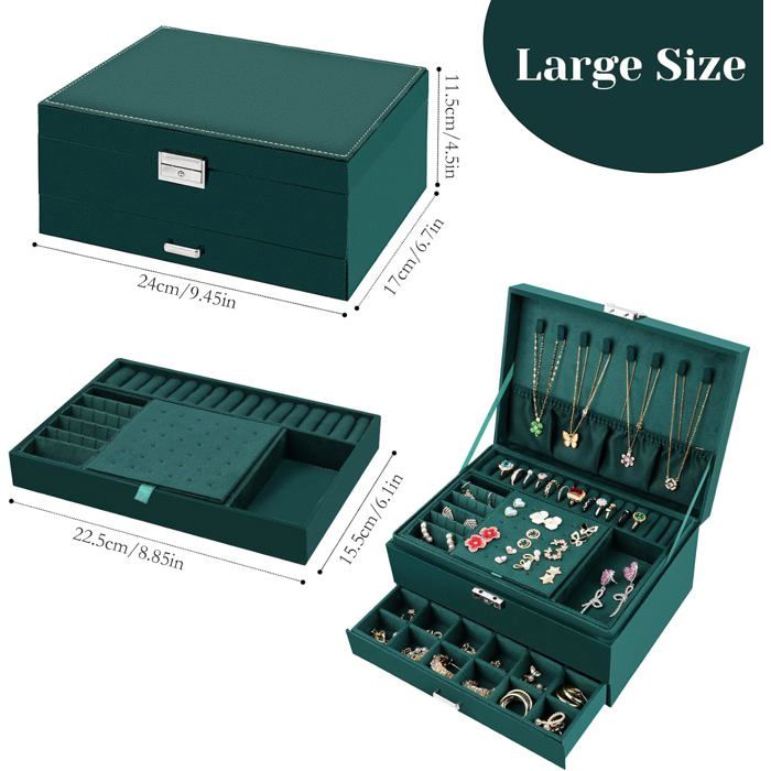 TEIVUL Boite a Bijoux Fee,Rangeent Bijoux 2 Couches,Boite à Bijoux... 💖【Doublure intérieure de qualité supérieure pour une protection en douceur】 L'intérieur est doublé d'un somptueux tissu semblable à du velours qui caresse vos bijoux, offrant un environnement doux et sans rayures. Il est également parfait comme cadeau de Saint-Valentin, de fête des mères, d'anniversaire de mariage, cadeau d'anniversaire, cadeau de Noël, pour votre amoureuse, mère, épouse et amie, fille. 💖【Grande capacité pour votre collection extensible】 Au fur et à mesure que votre collection de bijoux s'agrandit, le besoin de plus d'espace augmente également. Résistant et doux: La boîte à bijoux est fabriquée en panneau de fibres de bois de haute qualité à densité moyenne, la doublure en velours doux protège vos... Voyagez l'esprit tranquille, sachant que vos trésors sont bien verrouillés, que vous séjourniez dans une chambre d'hôtel ou que vous partagiez un espace de vie avec d'autres personnes. Vous êtes un amateur de bijoux avec une vaste collection qui exige une solution de rangement sûre, élégante et spacieuse ? Ne cherchez pas plus loin que la grande boîte à bijoux rose verrouillable [nom de la marque] – un rêve devenu réalité pour chaque fashionista. Que vous soyez une jeune fille avec une collection de bijoux en herbe ou un collectionneur chevronné avec un amour pour toutes les choses jolies, cette teinte rose ne manquera pas de voler votre cœur. Avec un simple tour de clé, vous pouvez être sûr que vos diamants, perles et objets anciens sont protégés des regards indiscrets et des accidents accidentels. 🎁💖【Choix de cadeau idéal pour les femmes】Cette boîte de rangement à bijoux vintage est non seulement parfaite pour ranger des colliers, des bagues, des boucles d'oreilles, des clous d'oreilles, des bracelets, des broches, etc. Cette boîte à bijoux de grande taille offre suffisamment d'espace pour ranger toutes vos pièces actuelles et a de la place pour les ajouts futurs. 💎【Espace de rangement de grande capacité à 3 étages】En plus des crochets séparés dans la boîte de rangement à bijoux, il y a 3 couches d'espace de rangement de bijoux de grande capacité. 💖【Mini miroir pratique pour les retouches de dernière minute】 Nous avons ajouté une touche attentionnée : un mini miroir intégré sur le couvercle. Boite A Bijoux Pas Cher étui Bijoux Voyage Miroir Boîte à Bijoux De Voyage NuAngela 3 Couches - Rangement Portable Pour Colliers, Bagues Et Boucles D'oreilles Boîte à Bijoux 3 Couches Avec Miroir Boite A Bijoux Vintage Les dimensions généreuses en font un choix pratique pour ceux qui ont de nombreuses collections, assurant que rien ne soit laissé derrière ou oublié. Il est parfait pour les matins pressés ou lorsque vous vous préparez pour une occasion spéciale et que vous devez vous assurer que chaque détail est en place. Ce n'est pas seulement une boîte, c'est un havre d'élégance et de fonctionnalité qui transformera la façon dont vous rangez et mettez en valeur vos précieux trésors. Organiseur de bijoux vintage : le tissu en velours vintage et la belle combinaison de couleurs roses rendent la boîte à bijoux très rétro et élégante. Boîte à bijoux - Bohème Vintage - 3 niveaux - Serrure 💖【Verrouillage robuste pour une sécurité ultime】 Vos bijoux sont précieux, à la fois sentimentaux et monétaires, et nous comprenons l'importance de les garder en sécurité. Des colliers de déclaration aux bracelets de cheville délicats, il peut tous les manipuler.
