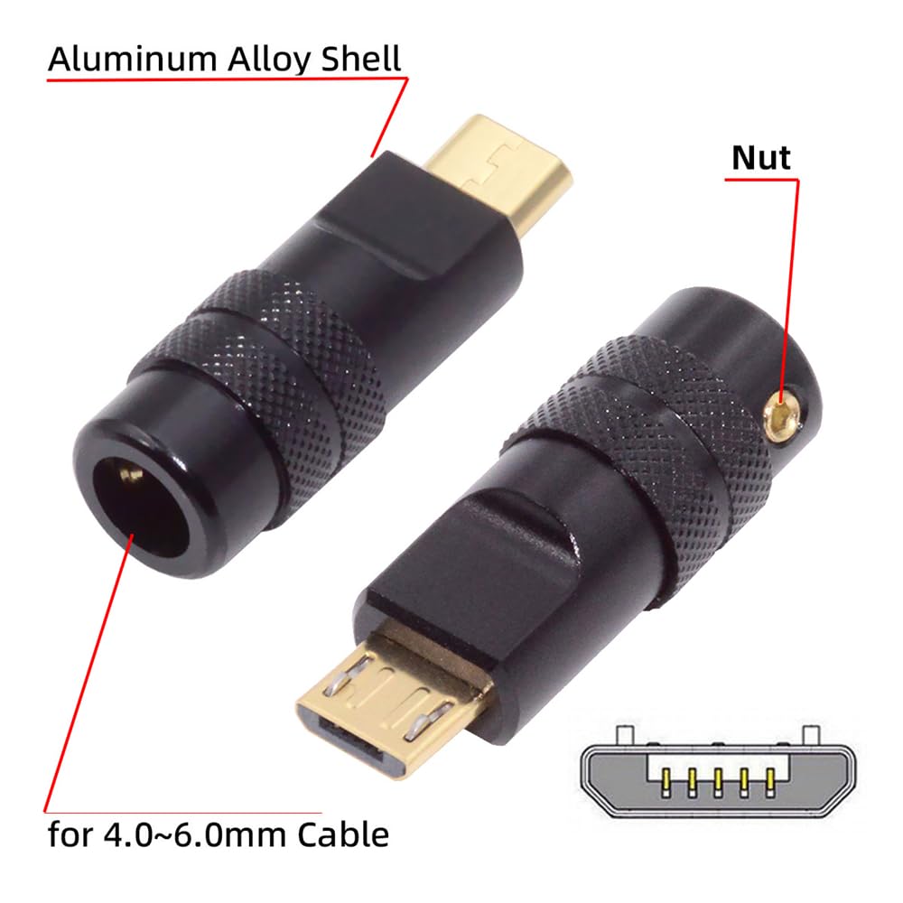Connecteur à souder USB 2., 0 Mini adaptateur mâle 5 broches avec coque en alliage d'aluminium Noir Personnalisation pour câble de 4,0 mm ~ 6,0 mm Le colis comprend un connecteur + couvercle avant + coque arrière + écrou., (Câble non inclus). La coque en alliage d'aluminium peut mieux protéger la prise, de sorte que le produit a une meilleure performance. Connecteurs mâles USB 2.0, 5 pièces/lot, fiches de données Micro Usb A Souder Xiwai Connecteur à Souder USB 2.0 Micro USB 5 Broches Mâle Adaptateur De Remplacement Avec Coque En Alliage D'aluminium Noir Personnalisation Pour Connecteur Usb C A Souder Conforme à la norme USB 2., 0 haut débit (480 Mbps), USB 1., 1 basse vitesse (1,5 Mbps). ROM Fer À Souder Usb Electric Soldering Iron, Mini Portable 8W Usb... Convient pour câble USB 2., 0 de 4 mm ~ 6 mm. Type de soudure et vous pouvez souder le câble vous-même. Vous devez l'acheter séparément. Connecteur Mini USB B a souder (10 pin pour l'usb)(2 points de fixation a plat et a 90°)