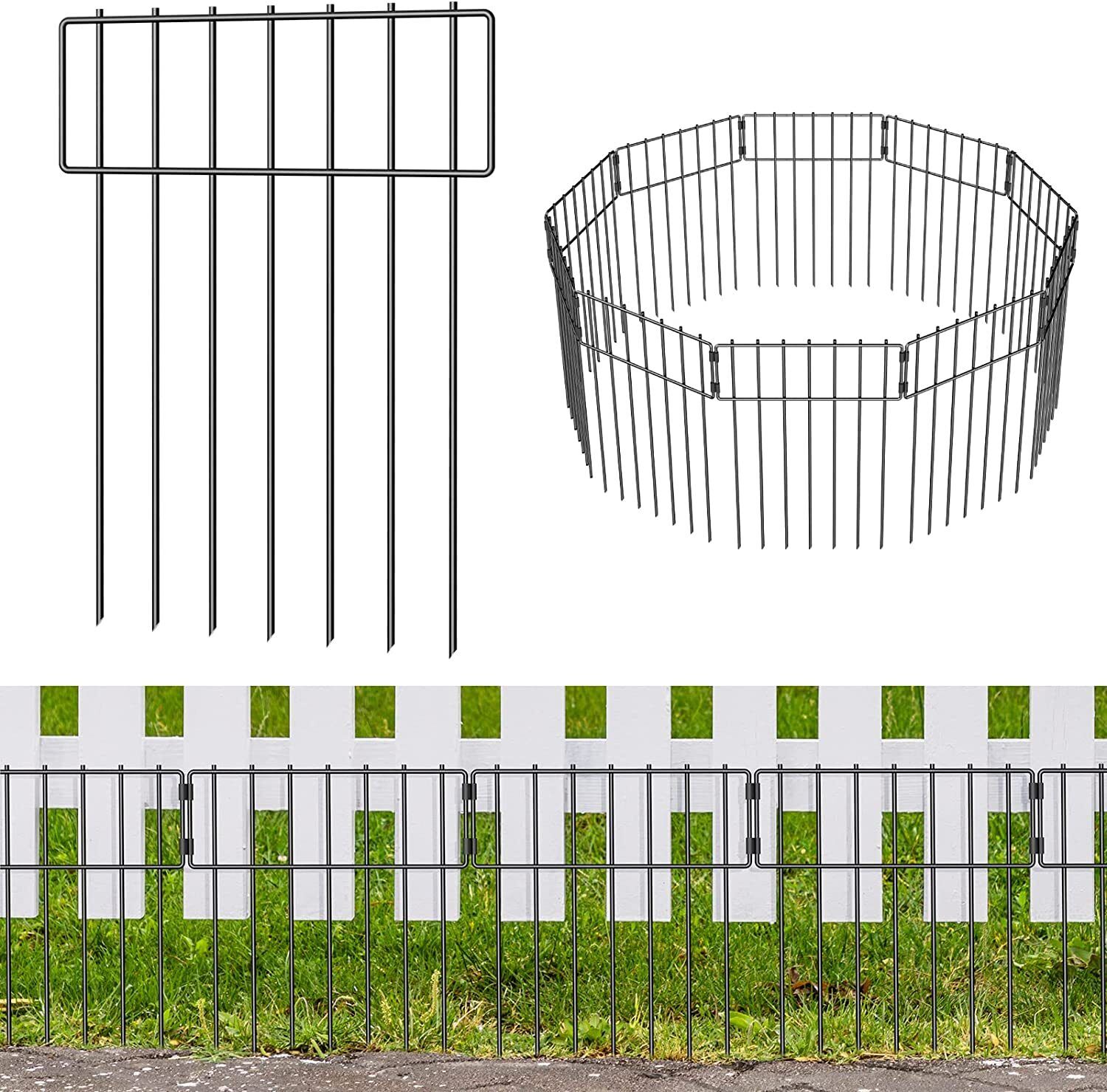 Lot de 10 clôtures décoratives pour animaux de 43,2 cm (H) x 3,2 m (L), clôture de jardin décorative sans creuser avec espace de 3,2 cm, panneau de bordure en métal antirouille pour chiens, lapins, clôture de pelouse pour extérieur, cour, terrasse Non seulement il améliore la fonctionnalité de la clôture, mais il renforce également la sécurité et l'esthétique de l'espace extérieur. NANANARDOSO Lot de 10 clôtures de barrière pour animaux - 43,2 cm La clôture de cour en métal noir est fabriquée en fil métallique épais soudé pour améliorer la résistance à la soudure, pas facile à fissurer plus solide, la surface a été traitée avec un processus de peinture cuite, résistante à la rouille et durable Large application : cette clôture de jardin décorative est adaptée comme légumes, pelouses, bordures de protection de jardin et clôtures de bord. Barriere Jardin Exterieur Clôture Jardin Outsunny Clu00f4ture De Jardin Extensible, Clu00f4ture De Jardin Autoportante Bordure Jardin Barrière Jardin Extérieur Empêche les animaux d'entrer : ces clôtures de barrière pour animaux peuvent bloquer efficacement les espaces au bas de votre clôture de cour, élargir votre gamme de protection de clôture, empêcher les chiens de creuser et de partir, et les petits animaux d'entrer dans votre cour, jardin et pelouse. En ajustant l'angle des connexions du panneau pour changer la forme de la clôture, il s'adaptera parfaitement à votre jardin. Facile à installer : la clôture de jardin CASIMR adopte un nouveau style de panneau de verrouillage avec extrémité tranchante. Présentation du produit Lot de 10 clôtures décoratives pour animaux - 43,2 cm (H) x 3 m (L) [240] Solide et antirouille : la clôture de jardin est soudée avec un fil métallique épais, et la surface est traitée avec de la peinture de cuisson pour éviter la rouille et pas facile à plier. Il peut fonctionner dans toutes sortes de mauvais temps et est solide et durable. Descriptif...