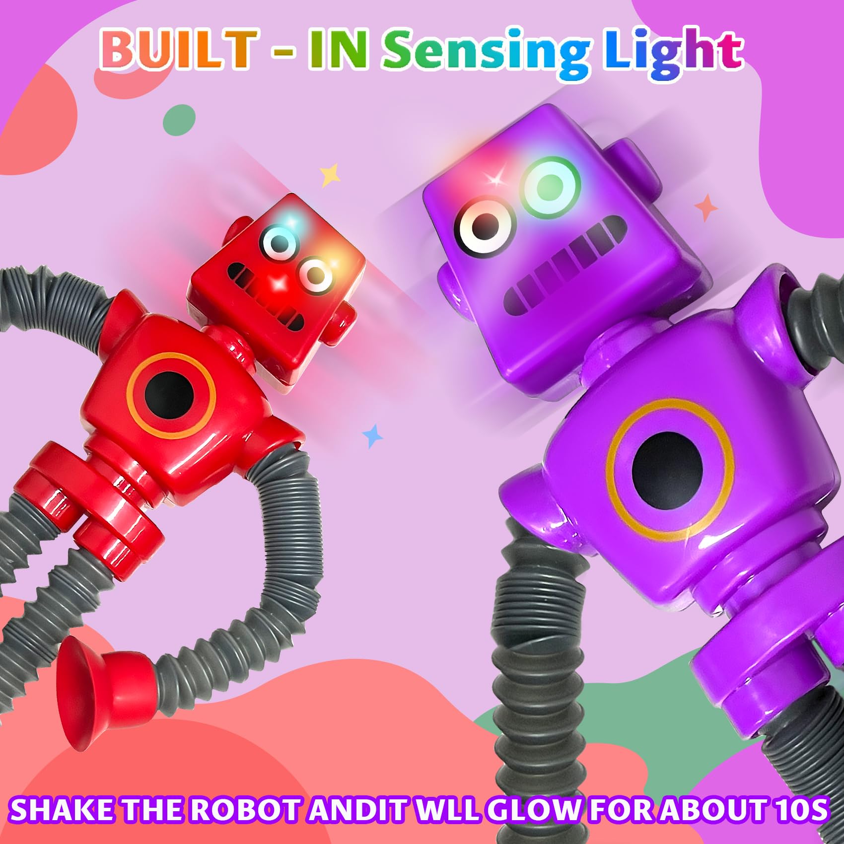 Pop, tournez, tirez, étirez ! Jouets Pop Tubes Fidget, 4 pièces, ventouse télescopique à Conception Unique : Ce jouet innovant de robot à succion en tube est composé d'un corps de robot, de tubes extensibles et d'une succion. Il peut être étiré... 🎁【Cadeau parfait】 Le jouet robot fidget est conçu pour le confort et facile à utiliser. 🤖【Emportez avec vous】 Notre jouet tube fidget pop pour enfants est compact, vous permettant de le transporter facilement avec vous partout où vous allez. Il peut être utilisé comme jouet sensoriel, jouet de bain ou jouet de fenêtre, etc. Totalement sans danger pour les enfants, il peut supporter de nombreux mouvements, rebondissements, étirements, tractions et flexions. Il aide non seulement les enfants à soulager le stress et à favoriser le développement sensoriel, mais sert également de cadeau d'anniversaire, de récompense en classe, de prix de carnaval, de cadeau de fête d'Halloween ou de cadeau de Noël. Les enfants peuvent aimer le coller n'importe où et le regarder se plier et se tordre dans différentes directions. Que ce soit à la maison ou en déplacement, il est parfait pour permettre aux tout-petits d'explorer librement leur design, d'améliorer leurs capacités motrices ou simplement de se calmer pendant le voyage. Cube Anti-Stress Fidget Jouet Pincement à la Main Échappement Anti... Mini Robot 4 Pièces Robot A Ventouse Télescopique Pop Tubes Mini Jouets Sensoriels Jouet D'etagère D'anxiété Fidget Jouets Sensoriels Convient Aux Enfants Adultes Autistes Pour Soulager Le Stress Anti Stress Enfant Le design mignon plaira sûrement aux enfants de tous âges.