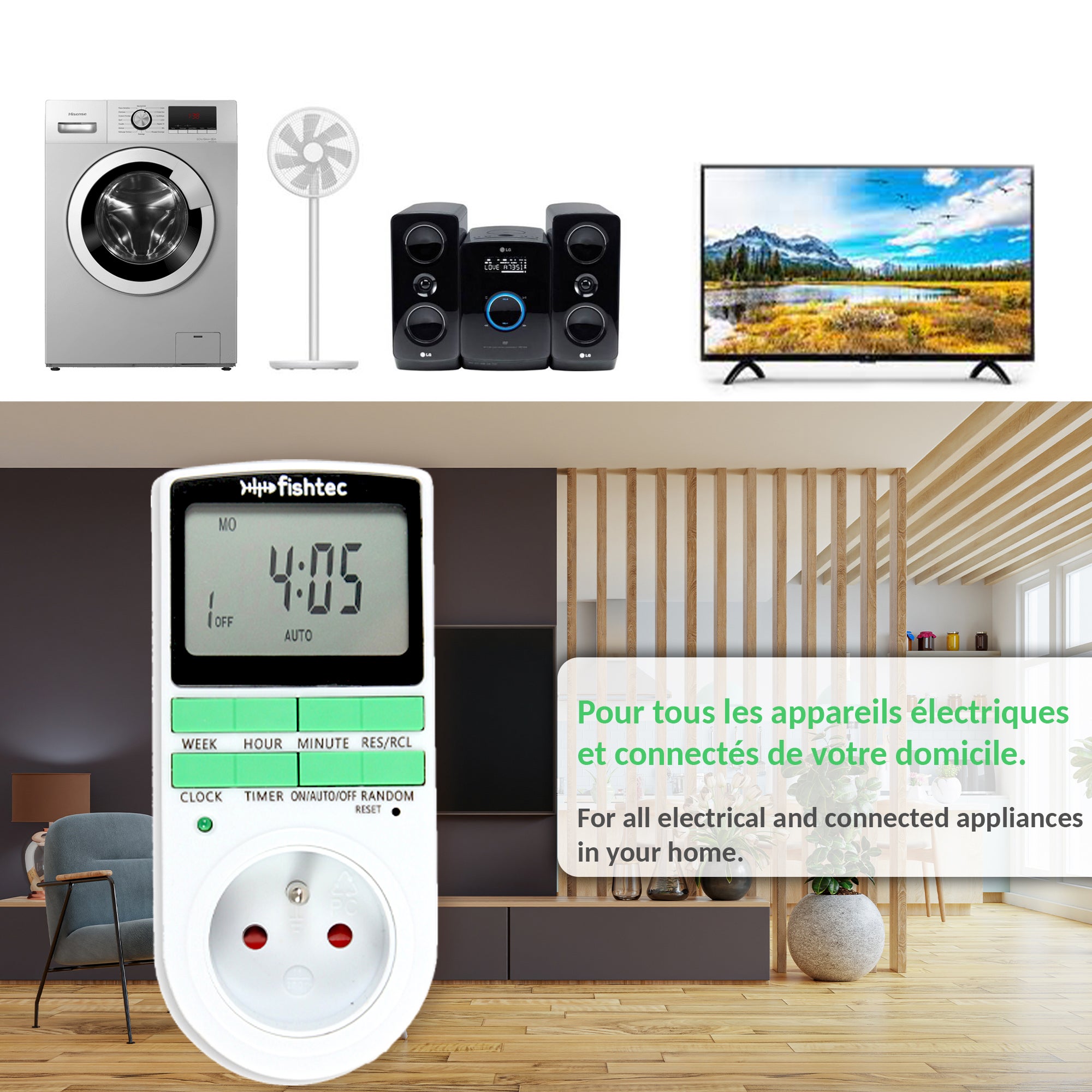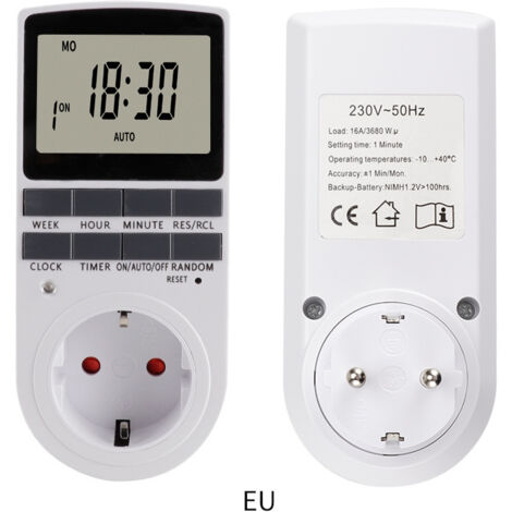 Cette minuterie numérique journalière est idéale pour les tâches de commutation récurrentes quotidiennes. La minuterie numérique Sygonix 1625525 est une solution polyvalente pour le contrôle automatisé des appareils électriques. Avec une puissance maximale de 3680 watts, ce modèle est idéal pour une utilisation en intérieur. La minuterie permet une programmation précise grâce à un programme hebdomadaire qui prend en charge jusqu'à 16 programmes différents. Cela offre une grande... Que ce soit à la […] Idéal pour les tâches de commutation quotidiennes Modèle : Protection de contact accrue L'utilisation est très simple. Grand écran facile à lire Rétroéclairage utilisable également comme veilleuse En outre, vous pouvez également utiliser l'éclairage comme veilleuse. Contenu : Lot d'autocollants hebdomadaires (plaques signalétiques) - Manuel d'utilisation (français non garanti) Programmateur Prise Prise électrique Programmable Hebdomadaire LCD - Achat/Vente NO NAME Programmateur Prise Electrique Sygonix Programme hebdomadaire digital 3680 W IP20 Fonction compte à rebours, fonction minuterie. Minuterie. CHF31.70. Sygonix Programme hebdomadaire digital... Sygonix SY-4504968 Minuterie pour montage encastré numérique