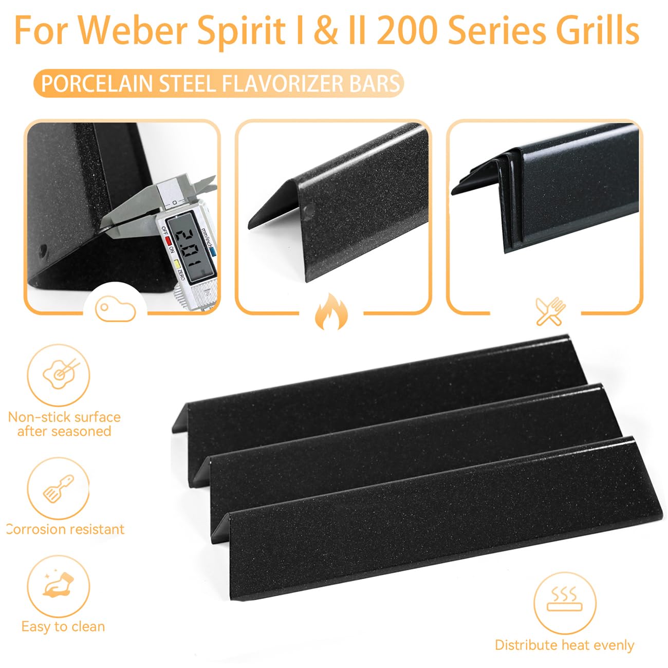 Matériau : acier émaillé en porcelaine. ✔ Pièces de rechange de qualité supérieure, extrêmement durables. ✔️ Remarques : convient pour Weber Spirit 200 Series avec panneau de commande monté sur le devant. Comparateur de prix en France. ★ Excellent remplacement pour vos barres aromatiques usées. Barres aromatisantes en acier et porcelaine de 38,9 cm. Acier porcelaine de qualité supérieure : ✔ Résistant à la rouille et à la corrosion. Qualité éprouvée et fiable : nous utilisons uniquement des matériaux de qualité supérieure, les barres aromatisantes Weber Spirit e-210 sont fabriquées en acier inoxydable de qualité durable avec une forte résistance à l'oxydation et à la corrosion. Pièces Weber Spirit 7635 Lot De 3 Barres Aromatisantes Pour Weber Spirit 2 Pièces Barbecue Gaz Weber Compatible avec la série Weber Spirit 200 : un lot de 3 barres aromatisantes de rechange 7635, parfaitement adaptées pour Weber Spirit 200 Series (avec panneaux de commande montés à l'avant) : Spirit E-210, Spirit E-220, Spirit S-210, Spirit S-220 (années de modèle 2013 à 2017) ; 【Également compatible】 Weber Spirit II 2 Grilles série 00, Spirit II E210 S210 E220 S220, Spirit II LX 200 modèles 2017 et plus récents. Caractéristiques des barres aromatiques 7635 : ★ Empêche les aliments d'exposer directement aux flammes et protège votre brûleur. ✔ Pièces parfaitement ajustées., Cuisinez mieux. Contenu : 3 barres aromatiques de rechange pour barbecues à gaz Weber Spirit 200 Series ; 【Économisez de l'argent】Même qualité que la barre aromatisante d'origine, mais presque la moitié du prix Descripción Compatible para la serie Weber Spirit 200: un conjunto de reemplazo de barras de saborizador de 3 paquetes 7635, perfectos para la serie Weber Spirit 200 (con paneles de control montado en la parte delantera): Spirit E-210, Spirit E-220, Spirit S-210, Spirit Spirit S-220 (Modelo de años 2013-2017); También CompatibilityWeber Spirit II 200 Series Grills, Spirit II E210 S210 E220... Ces pièces sont des pièces de rechange de rechange. Veuillez comparer avec la taille et le modèle de vos pièces d'origine avant d'acheter. Fini les boucliers thermiques rouillés, assez fort même avec une utilisation constante ★ Cuisinez mieux, dure plus longtemps, prolongez la durée de vie de votre gril, pièces parfaitement ajustées. Spirit E-310 Grill à gaz noir | Weber® Officiel Barres aromatisantes de rechange pour modèles de barbecue Weber : ✔️ Pièce de rechange pour Weber numéro : 7635., ✔️ Remplacement pour les barbecues à gaz Weber Spirit 200 Series (avec panneau de commande à l'avant) : Spirit E-210, E-220, S-210, S-220 (années de modèle 2013-2017). Pièce de rechange de qualité pour barbecue : pièces de rechange pour Weber Spirit 200 ★ Pièces de rechange pour Weber Spirit e-210 ★ Pièces de rechange pour Weber Spirit S-210 ★ Pièces de rechange pour Weber Spirit E-220 ★ Pièces de rechange pour Weber Spirit S-220 ★ Barres aromatisantes 7635 ★ Pièces de rechange 7635., Remarque importante et assurance qualité : gardez ce kit comme pièces de rechange pour Weber 7635, soyez assuré que ce produit répondra à vos attentes. ★ Distribue la chaleur uniformément, profitez d'une meilleure expérience de barbecue. Vous pouvez profiter de : ① Lot de 3 plaques chauffantes de rechange de qualité pour Weber 7635., ② Mieux griller, facile à nettoyer. 38.9cm Flavorizer Barres en Porcelaine émaillée pour la série Weber