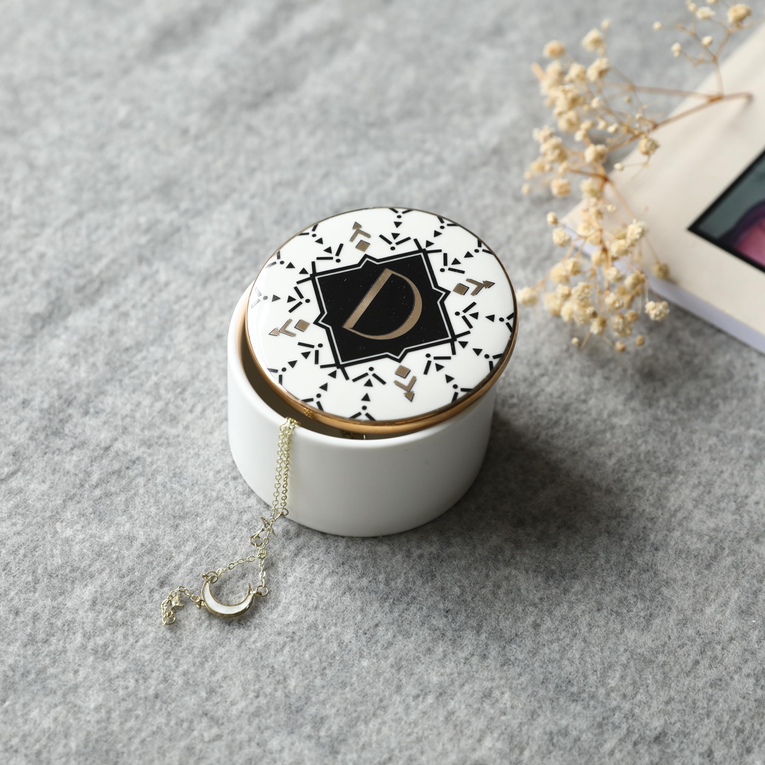 Cadeau idéal : nous fournissons une jolie boîte cadeau pour chaque boîte à bijoux, la surface noire avec texte doré est magnifique. Plat de bjoux en céramque fat à la man dans la man de paume, man... Boîte À Anneaux En Céramique - Mini Boîte De Rangement Ronde De Luxe L'apparence élégante et les bijoux se complètent. Boite A Bijouterie COLLECTIVE HOME - Boîte à Bijoux Avec Monogramme, Boîte à Boite De Rangement Bijoux Options de rangement polyvalentes : conçu avec différents compartiments, cet organisateur peut stocker en toute sécurité des bagues, colliers, boucles d'oreilles et autres bijoux, assurant que vos accessoires sont bien protégés et facilement accessibles Matériau : fabriqué en céramique de haute qualité sans plomb, sans cadmium. Style bohème : cette boîte à bijoux de style bohème est un excellent moyen de ranger vos bijoux.