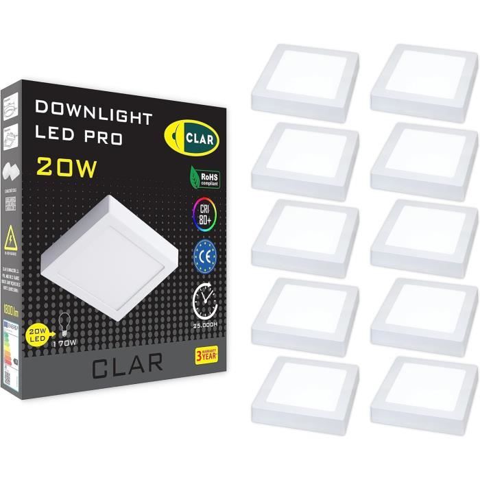 Ce plafonnier LED de 24W se distingue par son design innovant et moderne, avec une finition blanc mat qui s'intègre facilement dans tout environnement. Doté de normes de qualité élevées, il offre un éclairage puissant et efficace 【Service client garanti】Si vous avez des questions ou des problèmes avec la commande, contactez-nous et nous allons régler le problème dès que possible. En raison de sa finesse extrême, il est facile à installer au plafond avec un espace réduit, et en raison du fonctionnement normal du radiateur en aluminium de haute qualité, cela aide à minimiser le rayonnement de chaleur du luminaire LED et à assurer un fonctionnement à long terme. Ce panneau Downlight LED carré de 20 W a une finition mate blanche parfaite et un design à la fois innovant et moderne. 【Efficacité énergétique en vedette】 Grâce à la technologie LED économe en énergie, nos downlights encastrés vous aideront à réduire considérablement votre facture d'électricité. Led Neon CLAR HYBEC- Luminaire Plafonnier, Plafonnier LED, Lustre Lustre Chambre Adulte 【Versatilité pour tout espace】Nos downlights LED sont parfaits pour s'adapter aux différentes zones de votre maison, du salon à la chambre, en passant par la cuisine, la salle de bain ou les couloirs. 【25 ans d'expérience】CLAR illumine les maisons depuis 1994 avec la satisfaction du client comme objectif principal. La qualité de la lumière améliore l'apparence de la décoration intérieure et crée une atmosphère chaleureuse. Parmi ses principales caractéristiques se distingue son diffuseur opale, qui évite l'éblouissement et ne dérange pas la vue, ainsi que la bonne répartition de la lumière, angle d'ouverture de 120 degrés et 1600 lumens. HYBEC- Spot LED Carré EncastrabléSpot LED Encastrable Downlight Carré... Avec des dimensions standardisées, des trous coupés de 205 x 15 mm et un diamètre de 225 mm, il est spécialement conçu pour remplacer les downlights LED standard avec 2 ampoules fluorescentes (généralement de 24 W). Gagnez du temps et de l'argent tout en profitant d'un éclairage de qualité. Grâce à des instructions claires et simples, vous pourrez les monter en quelques minutes, sans avoir besoin de faire appel à un professionnel. Profitez d'un éclairage lumineux et uniforme qui rehausse l'esthétique de votre maison et améliore la visibilité partout. Plafonnier LED Plafonnier Couloir Blanc Chaud 16w Lampe De Chambre Moderne Noir