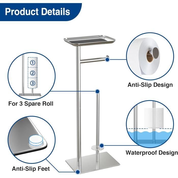 Alliez praticité et style avec ce porte papier toilette avec brosse WC intégrée au design moderne. Conçu pour les espaces restreints, il regroupe dans un seul meuble compact un dérouleur de papier et un support de brosse discret et fonctionnel Le support de papier toilette autoportant résistera à la rouille et à la corrosion lors d'une utilisation quotidienne tout en conservant un attrait esthétique. Espace de rangement pour papier toilette supplémentaire. Porte-papier hygiénique, support de porte-papier hygiénique sur pied Support Pq Relaxdays Support De Papier-toilette, Réserve De 4 Rouleaux Support Vertical Avec Pied 57x21 5x16 5 Cm En Fer Noir 85214329 Porte Papier Toilette Et Brosse Wc La base est lestée pour éviter le basculement. Il est confortable à utiliser avec la hauteur humanisée. L'ensemble du produit mesure 61 cm de hauteur. La base ronde robuste mesure 15 cm de diamètre et 2 cm d'épaisseur. Avec la tête supérieure pivote, la partie qui maintient le TP se replie lorsque vous tenez le TP mais peut être retournée vers le haut vous permettant d'ajouter ou de retirer facilement des rouleaux supplémentaires. Porte-papier hygiénique, support de porte-papier hygiénique sur pied... Le tampon en feutre sur le fond de la base empêche de rayer le sol, et permet une solidité et une stabilité supplémentaires au support de papier toilette.