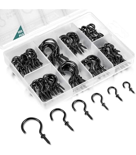 Description du produit : Crochets noirs à vis pour une utilisation en intérieur et en extérieur. GDJIAJT Lot de 10 crochets de plafond noirs à visser - Acier inoxydable - Avec 20 vis - Crochets muraux à visser - Crochets individuels pour serviette de salle de bain, cuisine, écharpe, clés Matériau Exquis: Les Crochets De Suspension Au Plafond Sont En Acier Au Carbone, La Surface Et Les Bords Sont Lisses Et Sans Bavures, Résistants à La... Crochet à vis 36 crochets de tasse pour accrocher de nombreuses choses. Facile à installer : avec une vis taraudeuse filetée, vous pouvez facilement visser le crochet métallique dans le bois, le mur, le plafond. Longueur de la vis : 18 mm., Couleur : noir., Matériau : métal. Caractéristiques : crochets à vis noirs pour plafond, ne tache pas et ne se corrode pas, utilisation pour la marine, la salle de bain et les applications extérieures, fabrication en métal résistant à la rouille. Utilisation intérieure et extérieure : crochets à vis très polyvalents, pour accrocher des tasses à café, organiser vos ceintures, chapeaux, écharpes, colliers de bijoux, colliers de bijoux, ustensiles de cuisine, serviettes, rideaux, balais, plantes, clés, colliers de bijoux, carillons à vent, cage à oiseaux et plus encore. Contenu : lot de 36 crochets à vis métalliques En utilisant d'abord un trou pilote et visser à la main ou en utilisant un œillet de vis dans votre perceuse., Taille : 32 x 18 mm. 36 Pièces Crochets à Visser Métal - 1-1/4 Inch Noir Plafond Vis Crochet en Vinyle Crochet de Mur Vis à Crochets pour Accrocher Tasses, Lumières, Pots de Fleurs 4,6 (774) Plus de 50 achetés au cours du mois dernier 669€ (0,19€/unité Crochet Noir IDEALSV Lot De 50 Crochets De Plafond à Vis En Acier Inoxydable Crochet à Visser Remarque : ces articles contiennent des pointes pointues fonctionnelles, veuillez les garder hors de portée des enfants et des bébés.