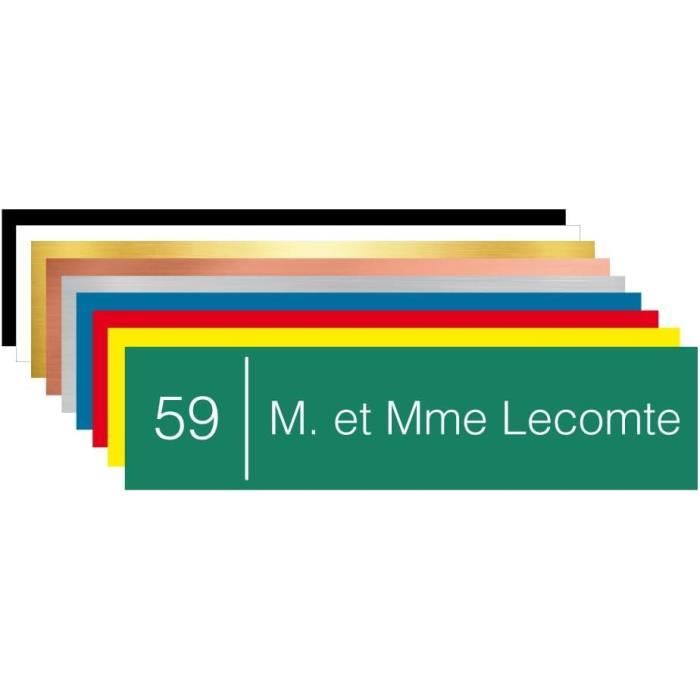Ajoutez une touche unique à votre boîte aux lettres avec nos numéros personnalisables de haute qualité. Nos experts de la gravure se chargeront de la fabriquer., Choisissez l'emplacement, Nettoyer ✅ Résistance Extérieure Matériau plastique waterproof et anti-UV, idéal pour une utilisation en extérieur durable Choisissez les personnages et les noms à graver sur la plaque en plastique argent résistante aux intempéries. Une plaque de boite aux lettres super originale pour toute la famille. Personnalisez votre numéro de boîte aux lettres avec style Plaque de boites aux lettres NUMERO personnalisée Elles conservent leur aspect neuf de longues années. Contrairement aux impressions, elle ne se décolore pas et résiste à l’usure, à l’eau et au soleil. Description du produit Plaques et numéros de boite aux lettres personnalisables Découvrez nos plaques de boite aux lettres personnalisables avec plus de 30 symboles différents, 20 couleurs de plaques et de 1 à 3 lignes de texte. Large choix de couleurs et d’options pour une boîte aux lettres unique. Plaque boite aux lettres adhésive format 10 x 2,5 cm 2 lignes blanc rouge De 3 à 6 personnages y compris vos animaux de compagnie., 20 couleurs différentes. Plaque boîte aux lettres originale Ma maison 3D 125x40mm ep.1.6168... Etiquette Boite Aux Lettres Personnalisée DECOHO - Plaque Boîte Aux Lettres Personnalisable - Lot De 2 Plaque Boite Aux Lettres Personnalisable Une fois votre personnalisation en ligne finalisée, nos équipes se chargent de graver votre texte avec précision pour un rendu premium. ✅ Compatibilité Decayeux Format 100x25 mm adapté aux boîtes aux lettres Decayeux, facile à insérer ou coller Comment fixer la plaque sur ma boîte aux lettres ? Nos plaques sont fournies avec un adhésif 3M haute résistance. Peut-on choisir la couleur et la police ? Oui, vous disposez d’un large choix de coloris et de polices d’écriture pour un rendu parfaitement adapté à votre style et à votre boîte aux lettres. Caractéristiques et avantages principaux Nos plaques sont fournies avec un adhésif 3M haute résistance. Gravure laser inaltérable, résistante à l'eau, aux UV et au temps. Numéro de boites aux lettres... Personnalisez vos plaques et numéros de boîte aux lettres ! Personnalisation Pr cise Gravure laser sur 3 lignes pour un rendu net et durable, sans risque d'effacement, Design Authentique Effet bois clair avec lettres noires et embl me Bretagne Triskell pour une touche r gionale l gante, R sistance Ext rieure Mat riau plastique waterproof et anti-UV, id al pour une utilisation en ext rieur durable Découvrez nos plaques de boite aux lettres personnalisables avec votre numéro de rue indiqué, 20 couleurs de plaques et de 1 à 3 lignes de texte. Plaque de boites aux lettres SYMBOLE personnalisée Choisissez le coloris de votre choix. Quelles matières utilisez-vous pour les plaques ? Nos plaques sont fabriquées en PVC gravé au laser, résistant aux intempéries, aux UV et aux variations de température. Gravure laser inaltérable, résistante à l’eau, aux UV et au temps. ✅ Personnalisation Précise Gravure laser sur 3 lignes pour un rendu net et durable, sans risque d'effacement Découvrez nos plaques de boite aux lettres personnalisables, 20 couleurs de plaques et de 1 à 3 lignes de texte.