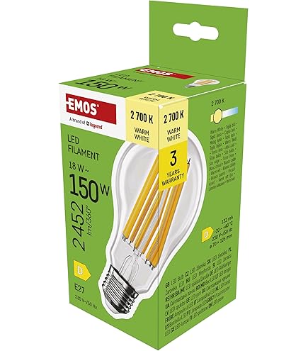 Ampoule Led E27 EMOS Ampoule LED A60, 4 W Pour Remplacer Une Ampoule à Incandescence De Ampoules Led L'ampoule LED EMOS ZL5F52 permet d'économiser de l'énergie et protège notre environnement. La lumière blanche chaude apaisante avec une puissance lumineuse de 3 000 K et 1055 lumens avec un très large angle d'éclairage de 200 degrés et un indice de rendu des couleurs élevé assurent une ambiance chaleureuse. Lot de 10 ampoules de four a culot E14 25 W, ampoule a incandescence... L'ampoule LED dimmable Ecosmart 60W équivalente blanc chaud (2700K) B11 avec filament en verre antique (paquet de 4) a un filament en verre classique. Cette ampoule LED de 5 watts offre une lumière blanche douce similaire à une ampoule incandescente B11 de 60 watts tout en générant moins de chaleur. Elle doit être utilisée uniquement sur 120V. Apparence de la lumière : luminosité 500... MAKING LIFE EASY : la société EMOS est membre du groupe Legrand et propose des produits électriques de qualité supérieure à des prix raisonnables pour le secteur privé et commercial. Ampoule Led A60, 13W Équivalent 100W, 1200Lm Bright Blanc Chaud 3000K Notre objectif est de vous faire plaisir lors de l'utilisation quotidienne de nos produits Rendu des couleurs élevé (IRC > 80) pour des couleurs vives Universel : montage facile grâce au culot de lampe E27., La lumière agréable crée une atmosphère relaxante dans votre salon, chambre à coucher, chambre d'enfant et autres zones de repos dans votre maison ou votre bureau. Décoration Décoration Code EAN: 3700619417066 Perception sensorielle / Coloris: Multicolore En-tête / Fabricant: Supraled Type de Produit: LED Rubrique principale Décoration: Luminaire Titre: Ampoule LED (A60), culot B22, conso.9W (eq. Vous pouvez facilement visser cette ampoule LED de 12,4 W comme modèles « Retro Fit » dans les douilles à incandescence existantes (E 27) de vos installations et remplacer les ampoules à incandescence standard de 75 W.