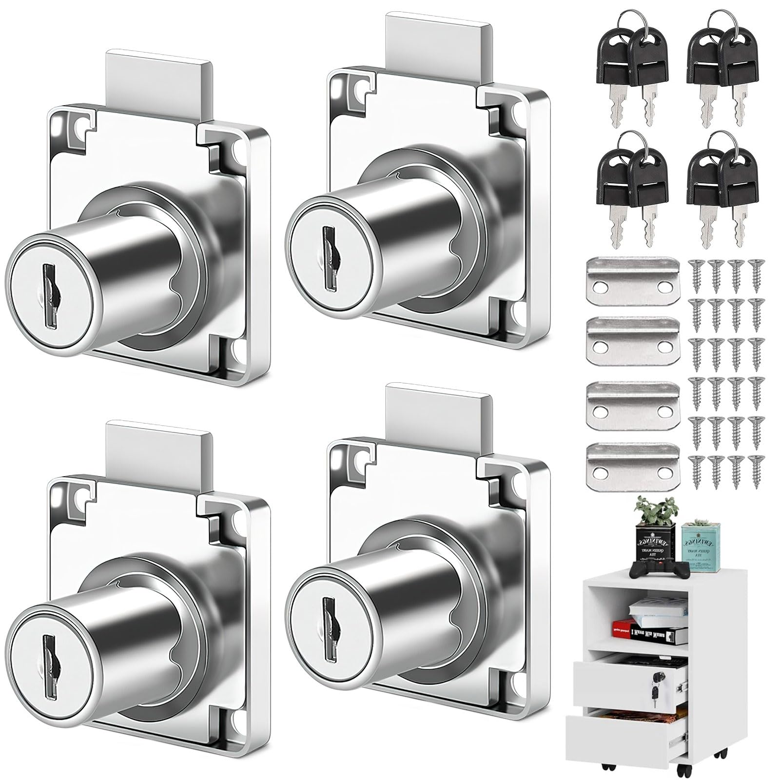 Il est fermement combiné avec la porte de l'armoire et est sûr et fiable. Serrure Pour Porte De Tiroir Lot De 4 Serrures à Cames Pour Tiroir Avec Clé Pour Bureau, Boîte Aux Lettres, Placard, Facile à Installer Serrure Pour Tiroir De Bureau Matériau : Alliage de zinc, Couleur : Argent Description du produit Caractéristiques: Verrou de sécurité en alliage de zinc pour meubles avec clés identiques - Toutes les serrures d'un ensemble peuvent être ouvertes avec la même clé, ce qui est bénéfique lorsque plusieurs verrous sont utilisés par la même personne de sorte qu'une seule clé doit être utilisée. - Facile à installer, prend en charge le montage sur bois ou métal, panneaux de porte et façades de... En outre, il offre une grande intimité pour les articles personnels qui ne sont pas visibles par les autres. Dimension de la base : 40 x 39 x 6., 4mm / 1., 57 x 1., 54 x 0., 25 (L*L*T) Une Solution économique Et Facile à Installer Qui Ajoute De La Sécurité Aux Objets De Valeur. Convient Pour Les Bureaux, Armoires, Commodes... Diamètre du trou de perçage : 19 mm / 0., 75 inch Facile et rapide à installer, s'ouvre et se ferme en douceur. VZUHSW Serrure de tiroir pour meubles avec clé, idéale pour classeurs, armoires et vitrines, Diamètre de 16 mm, fonctionne avec un mécanisme à piston, poussoir avec clé, Disponible en argent, 1 pièce Convient pour les bureaux, les armoires, les commodes, les classeurs, les maisons, les bureaux. Diamètre du trou de montage de la vis : 4mm / 0., 16inch Longueur du cylindre : 21 mm / 0., 83 inch Dimensions : 18,7 x 21 mm (diamètre : * H) ; dimensions de la base : 40 x 39 x 6,4 mm (L x l x T). Améliore la sécurité : verrou de tiroir à double noyau avec un design spécial, ce qui peut grandement améliorer la sécurité, pas facile à casser avec des outils.